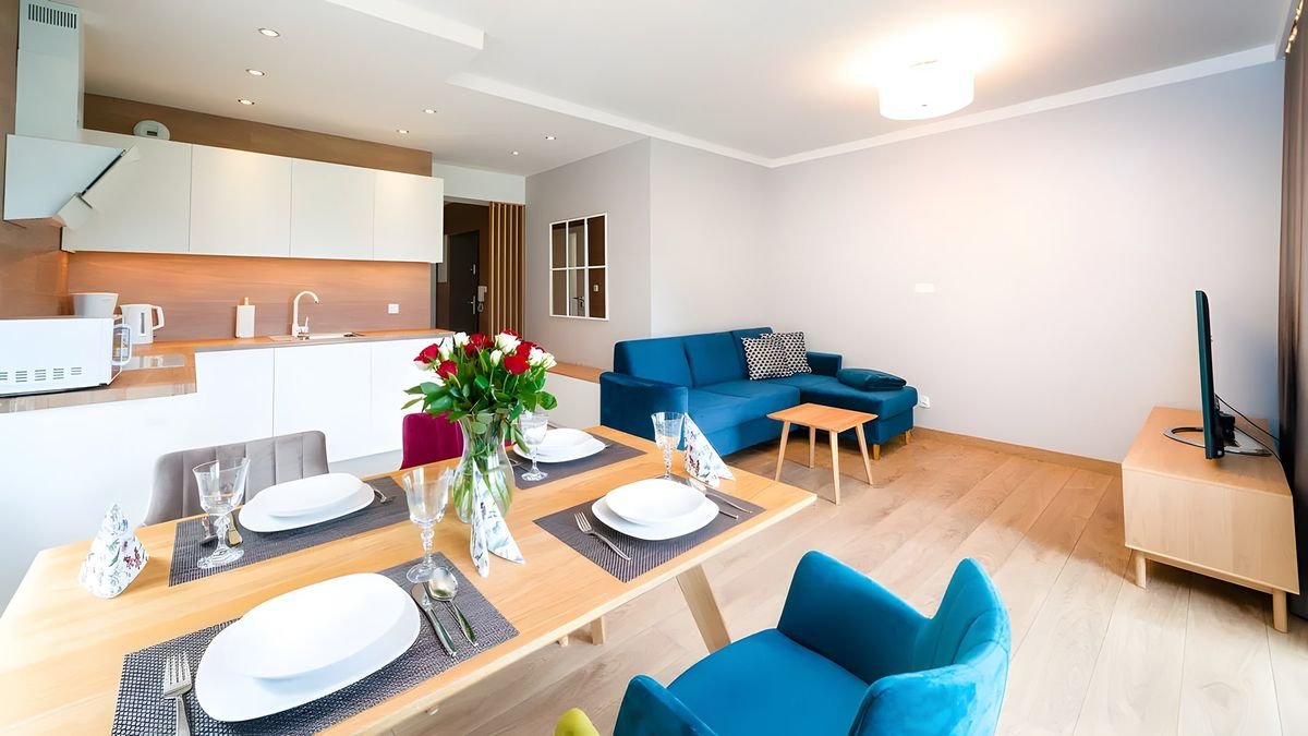 Marzysz o wakacjach w pięknej i spokojnej okolicy? Zaplanuj swój urlop w apartamencie w Karpaczu i poczuj góralską atmosferę na własnej skórze! Do gustu przypadną Ci nowoczesne i komfortowe wnętrza, zaprojektowane z myślą o Twojej wygodzie. Znajdziesz tu wszystko, czego potrzeba do wypoczynku – przestronne pokoje i wyposażony aneks kuchenny sprawią, że poczujesz się jak w domu. Blisko stąd do centrum miasta, więc wybierz się na spacer i zjedz słynne, grillowane serki z żurawiną, a jeśli lubisz piesze wędrówki, znajdziesz tu sporo szlaków wartych zobaczenia – koniecznie zdobądź Śnieżkę, najwyższy szczyt Karkonoszy! Wieczorem odpocznij, nabierz sił na kolejny dzień pełen wrażeń, usiądź na balkonie lub tarasie i rozkoszuj się malowniczymi widokami na las i góry. Polskie góry zachwycają, sprawdź to sam!