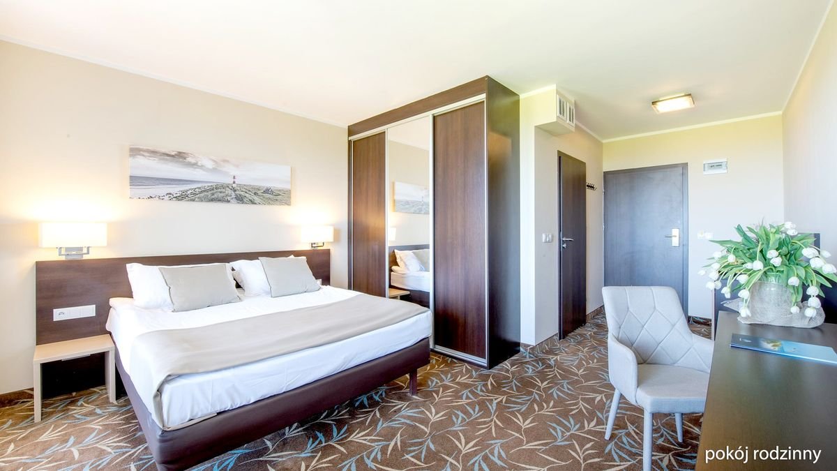 Tutaj Twój urlop nad morzem będzie udany! Atrakcyjnie położony na mierzei, pomiędzy Bałtykiem a Jeziorem Jamno, jest wymarzonym miejscem na rodzinne wakacje. Jest tu cicho i spokojnie, a jednocześnie blisko centrum Mielna, które w letnich miesiącach tętni wakacyjnym rytmem. W hotelu czekają nowoczesne, komfortowe pokoje, moc atrakcji dla dużych i małych, a przede wszystkim niezatłoczona plaża i nieograniczony dostęp do zdrowego, morskiego, powietrza. W hotelowej restauracji spróbuj smacznych i zdrowych dań bazujących na świeżych, naturalnych i sezonowych produktach, a w centrum spa skorzystaj z szerokiej oferty zabiegów pielęgnacyjnych. I koniecznie wybierz się na długi spacer brzegiem morza!