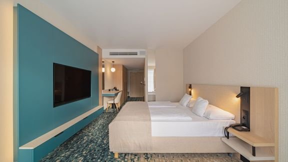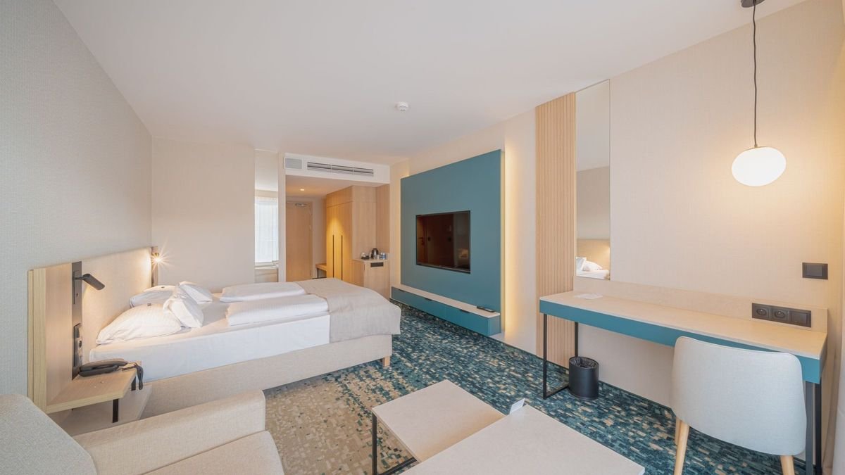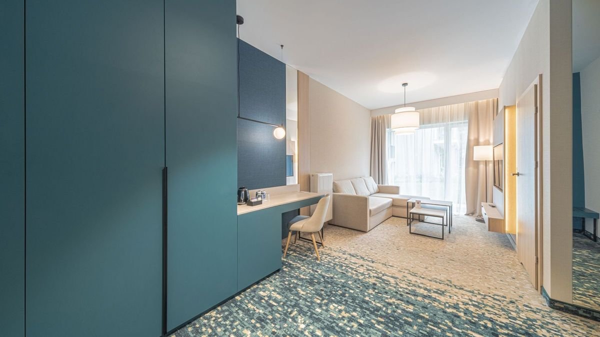 Zaledwie kilka kroków od szerokiej, piaszczystej plaży czeka miejsce, które łączy komfort z atrakcjami dla całej rodziny! Dzieci mogą liczyć na animacje, plac i pokój zabaw, a nawet zabiegi w spa, w okolicy znajdziesz również lunapark czy park linowy. Do dyspozycji są dwa baseny, w tym jeden w strefie spa, gdzie można się zrelaksować po aktywnym dniu. Pokoje są przestronne, przytulne i chwalone za czystość oraz funkcjonalność. Goście doceniają spokojną lokalizację, smaczną kuchnię i przyjazną atmosferę, która sprzyja wypoczynkowi.