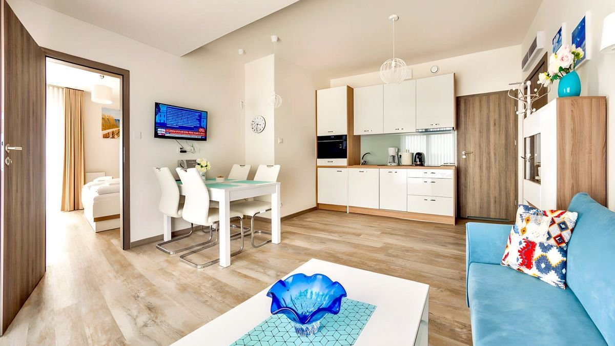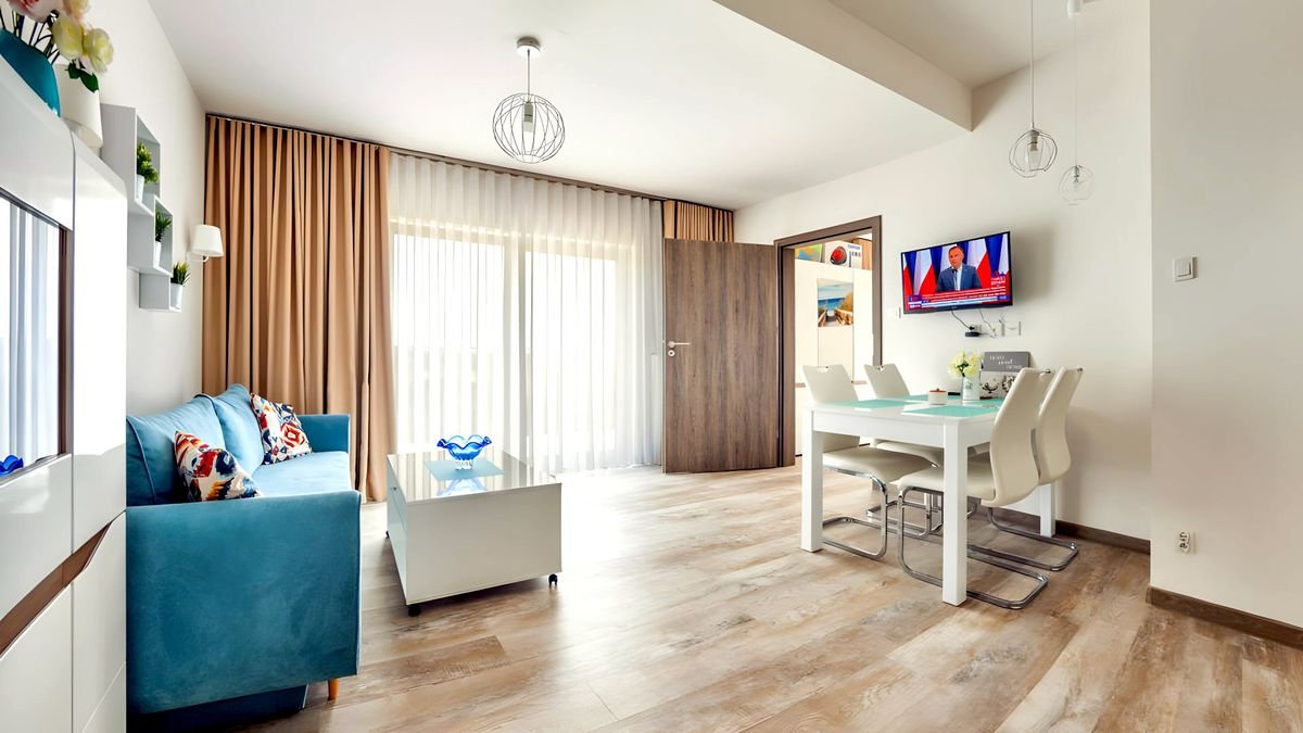 Jeśli szukasz pomysłu na beztroskie rodzinne wakacje nad polskim morzem to mamy dla Ciebie coś wyjątkowego. Odwiedź urokliwą nadmorską miejscowość – Sianożęty i odpocznij w nowoczesnych, stylowo urządzonych apartamentach położonych w przyjemnej, zielonej okolicy, w odległości spaceru od piaszczystej plaży. To doskonała propozycja dla osób, które cenią sobie niezależność, prywatność i swobodę – każdy z apartamentów posiada dobrze wyposażony aneks kuchenny, w którym można łatwo przyrządzić ulubione posiłki niezależnie od pory dnia. Z myślą o najmłodszych przygotowano plac zabaw oraz brodzik, a dorosłym z pewnością spodoba się relaks w krytym basenie, jacuzzi i saunie. Nie czekaj, zarezerwuj swój pobyt już dziś!