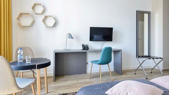 Zaprojektowany w każdym calu tak, aby Goście czuli się tutaj dobrze – cała przestrzeń stworzona została z myślą o wygodzie i z dbałością o atmosferę sprzyjającą zarówno pracy, jak i wypoczynkowi. Komfortowe, funkcjonalne pokoje są nowoczesne, a jednocześnie przytulne i stylowe. W restauracji spróbować można smacznych dań przygotowywanych z pasją w oparciu o najlepsze produkty i tradycyjne receptury, z wykorzystaniem nowoczesnych technik kulinarnych. Dodatkowym atutem jest lokalizacja w pobliżu lotniska – możesz zatrzymać się tutaj, aby nabrać sił przed dalszą podróżą, lub po prostu zostać na dłużej – to miejsce idealne na służbowy lub indywidualny pobyt długoterminowy dla wszystkich miłośników wielkomiejskiego życia.