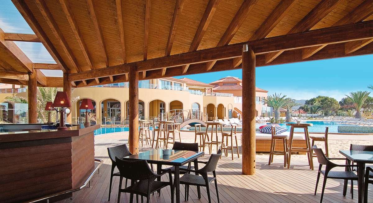 śniadanie (7.30-11.00), obiad (13.00-15.00), kolacja (18.30-22.30) w formie bufetu w restauracji Mares; przekąski w barze Dunas (11.00-18.30); napoje bezalkoholowe i lokalne napoje alkoholowe w wyznaczonym barze (11.00-24.00); wymagane noszenie opasek all inclusive.