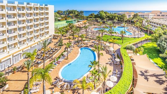 Zaplanuj urlop z rodziną w miejscu położonym w malowniczej i spokojnej lokalizacji, jednocześnie w otoczeniu najpiękniejszych plaż w Algarve! Jeżeli zamiast piasku wolisz leżak na tarasie i basen, to tutaj również znajdziesz miejsce idealne dla siebie – do dyspozycji Gości aż 3 baseny, w tym dla dzieci i basen kryty w spa! Mocną stroną hotelu są rozrywkowe animacje i szeroka oferta atrakcji dla najmłodszych, którzy chętnie spędzają czas w miniklubie lub na placu zabaw. Na urlopie lubisz różnorodność również jeśli chodzi o kuchnię? Tu masz do wyboru aż 4 restauracje i 5 barów, w tym m.in Oriental serwującą kuchnię azjatycką i bar swim-up, w którym będziesz delektować się koktajlem, jednocześnie chłodząc się w wodzie. Koniecznie zwiedź okolicę i wybierz się do pobliskiej Albufeiry – tętniącego życiem kurortu, w którym można się zakochać!