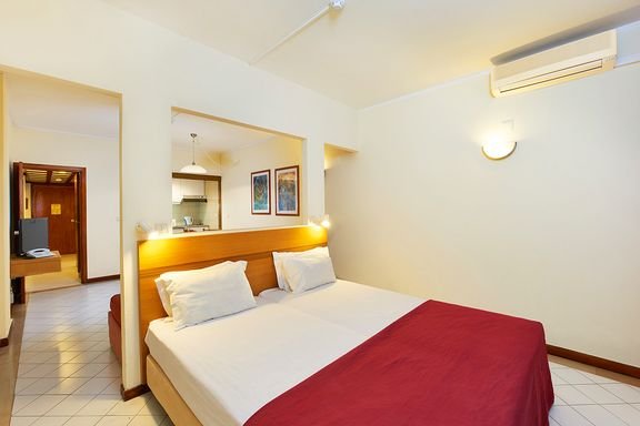 Idealne miejsce na rodzinne wakacje - położony z dala od zgiełku miasta, jest doskonałą oazą na spokojny wypoczynek z przyrodą w tle. Blisko stąd do 2 pięknych, piaszczystych plaż, idealnych zarówno do błogiego odpoczynku na leżaku, jak i uprawiania sportów wodnych. Na terenie hotelu są 2 baseny, w tym jeden z tarasem do opalania, brodzik i plac zabaw dla dzieci. Duże i wygodne apartamenty są funkcjonalnie wyposażone i pomieszczą nawet 4-osobową rodzinę. Doskonały, jako baza wypadowa do zwiedzania Albufeiry i Faro.
