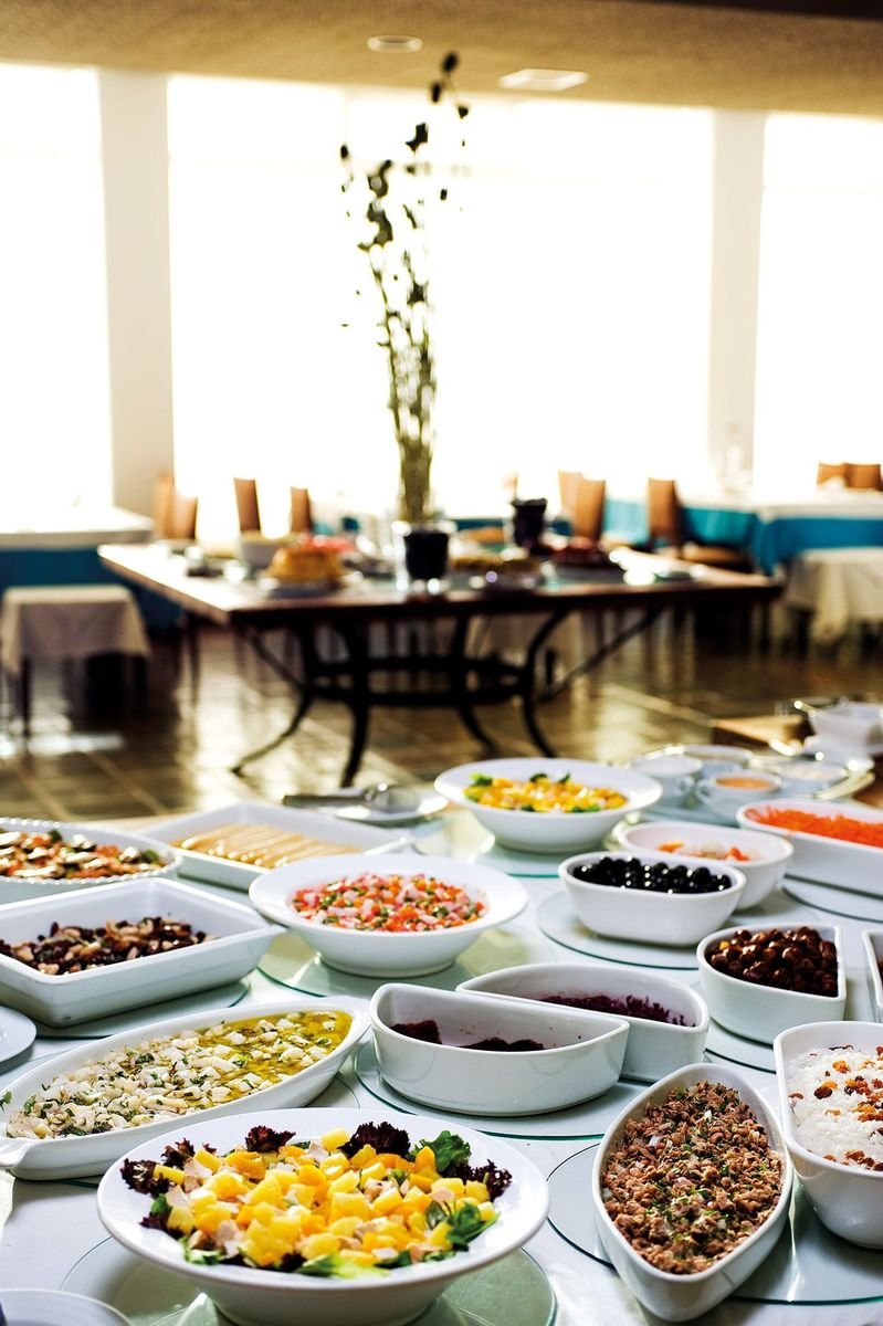 śniadanie (8.00-10.00), obiad (13.00-15.00), kolacja (20.00-22.00) w formie bufetu lub serwowane; limitowane: woda, napoje bezalkoholowe  i wino do posiłków.