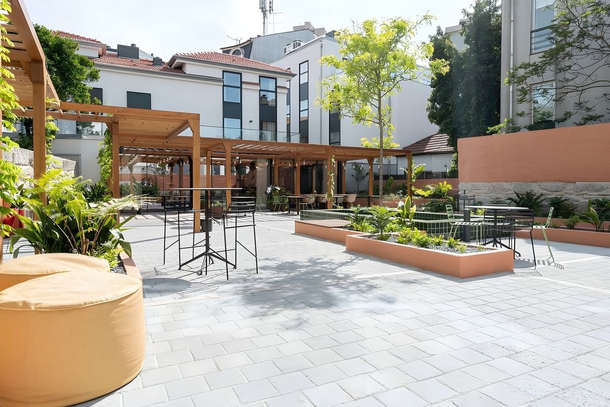Jeśli podczas wizyty w Porto marzy Ci się kameralny azyl, który umożliwi spokojny wypoczynek i jednocześnie pozwoli garściami czerpać z uroków miasta, mamy dla Ciebie coś wyjątkowego. Stylowy hotel położony w cichej okolicy, zaledwie kilka kroków od centrum oraz ciekawych atrakcji. Odkrywaj kultowe miejsca, w tym pobliską majestatyczną Kaplicę Dusz czy kościół św. Ildefonsa, którego fasadę zdobią ikoniczne biało-niebieskie płytki azulejos, a do bardziej odległych zakątków wygodnie dotrzesz komunikacją miejską. Na miejscu czekają na Ciebie stylowe wnętrza pełne subtelnych roślinnych akcentów, jasne i komfortowe pokoje oraz przytulny taras otoczony piękną zielenią ogrodu. To idealna przestrzeń, by odprężyć się i złapać oddech po dniu pełnym wrażeń.