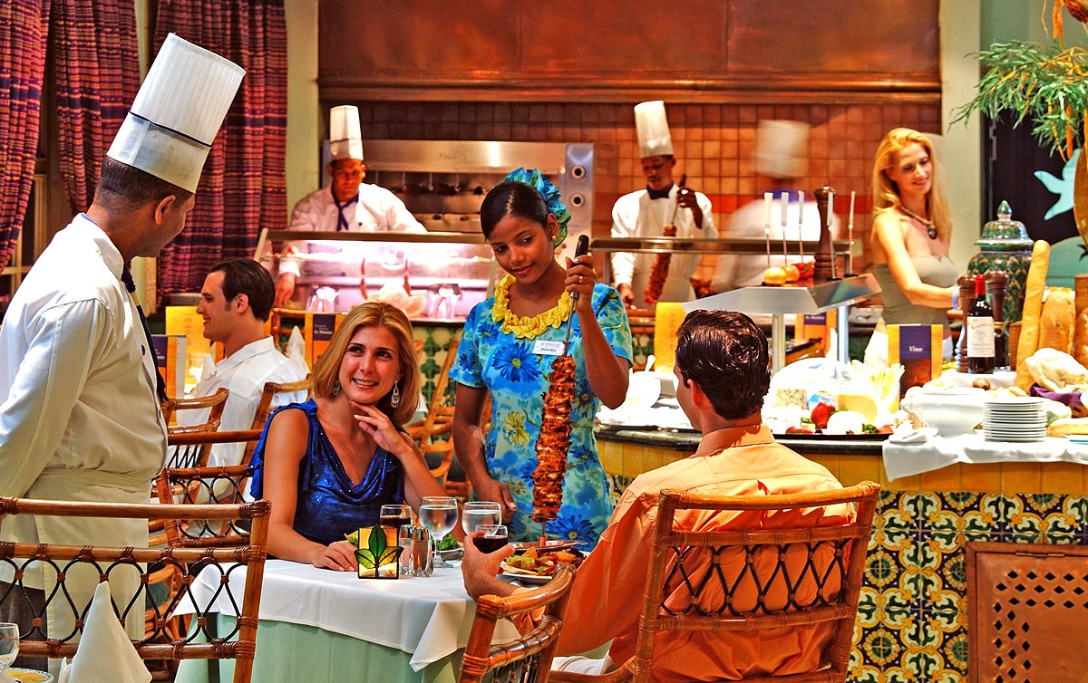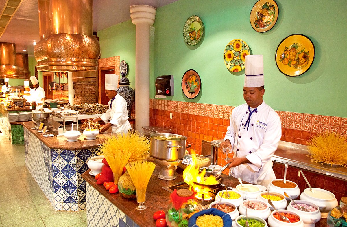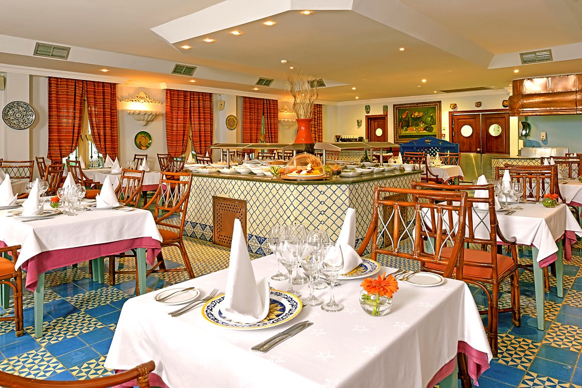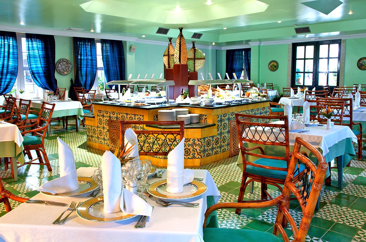 śniadanie (7.00-10.00), obiad (13.00-15.00), kolacja (18.30-22.00) w formie bufetu w restauracji El Mercado; późne śniadanie (10.00-12.00), przekąski (16.00-18.00) w El Bohio, przekąski w La Hacienda (23.00-7.00); napoje bezalkoholowe i lokalne napoje alkoholowe (10.00-23.00) w wyznaczonych barach; wymagane noszenie opasek all inlusive.