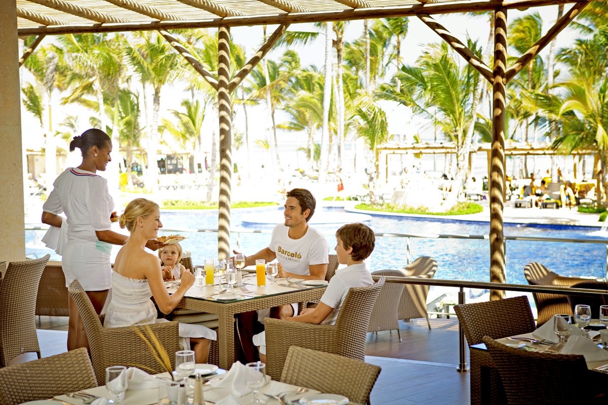 w dzielnicy hotelowej Bavaro, w regionie PUNTA CANA, w pobliżu sklepy oraz bary, ok. 2 km od Manati Park, ok. 40 km od Higuey, ok. 200 km od Santo Domingo; ok. 75 km od lotniska w La Romana, ok. 20 km od lotniska w Punta Cana; wraz z sąsiednimi hotelami Barcelo zajmuje rozległy teren, gdzie kursuje bezpłatna minikolejka; przy Barcelo Palace, z zapleczem gastronomicznym i sportowym.
