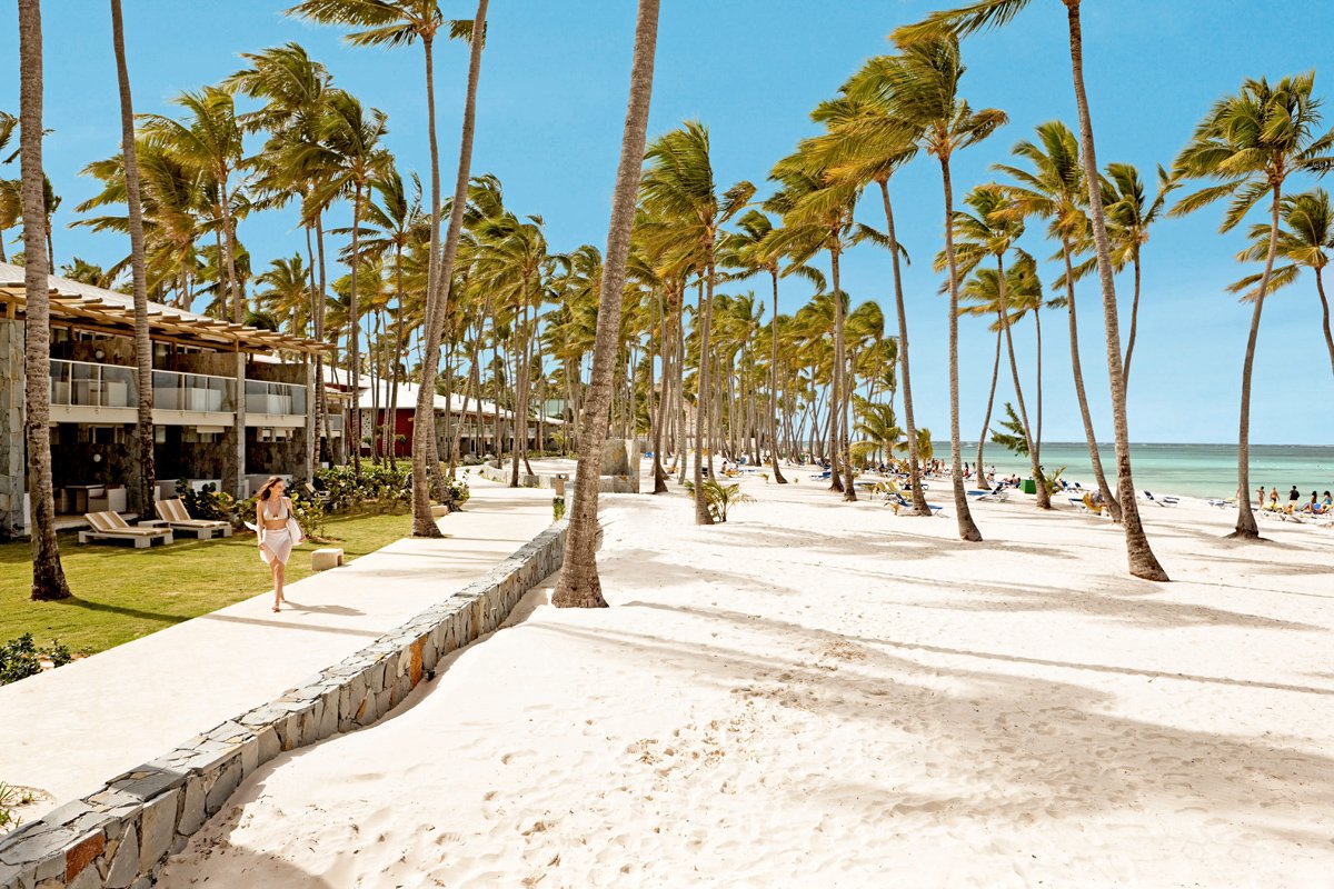 Bavaro Beach, delikatny, jasny piasek, łagodne zejście do morza, bezpośrednio przy hotelu, bezpłatne leżaki i ręczniki.