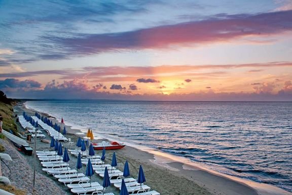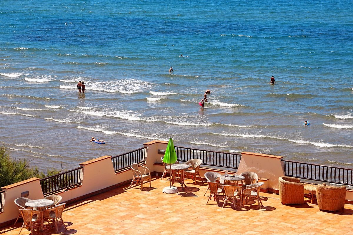 Platamona, publiczna, piaszczysta, miejscami występują kamienie naniesione przez morze (ich ilość uzależniona jest od pory roku), łagodne zejście do morza, bezpośrednio przy hotelu, odległość zależna od zakwaterowania, zejście po schodach, bezpłatne parasole i leżaki (dostępne w miarę wolnych miejsc).