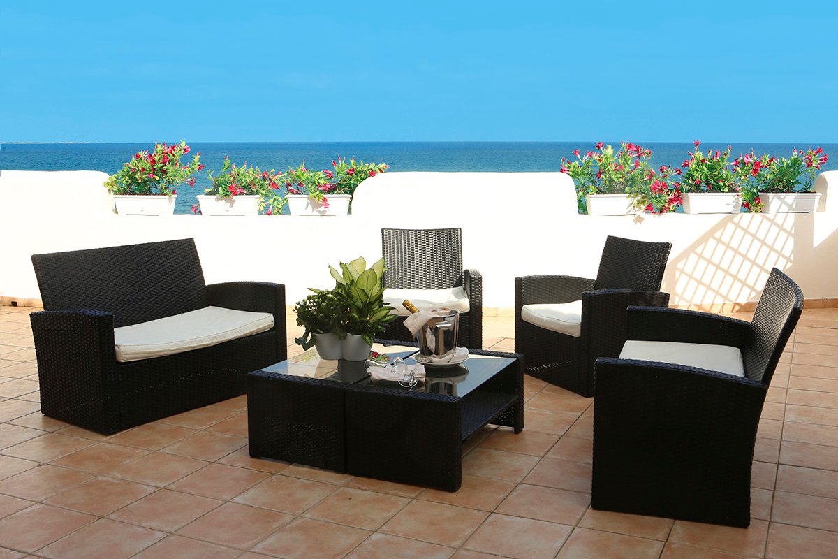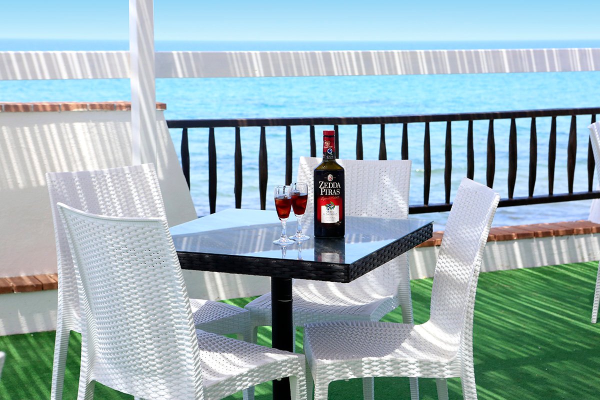 śniadanie (8.00-10.00), obiad (13.00-14.30), kolacja (19.30-21.00) w formie bufetu; do posiłków nielimitowana woda, lokalne piwo, lokalne wino i wybrane napoje bezalkoholowe; woda i wybrane napoje bezalkoholowe (10.00-23.00) oraz wódka, limoncello i mirto (20.00-23.00) w wyznaczonym barze.