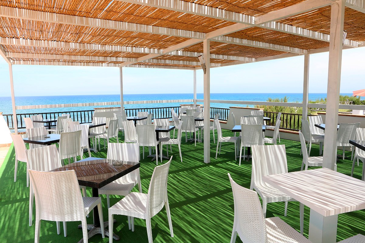 czterogwiazdkowy, zbudowany w 1991 r., odnowiony w 2007 r. i sezonowo odnawiany, łącznie 304 pokoje, budynek główny i kilkanaście bungalowów, do 2 pięter, przestronny hol, całodobowa recepcja, restauracja z tarasem - dania w formie bufetu, kuchnia śródziemnomorska i międzynarodowa, dostępne foteliki dla dzieci, bar przy basenie; minimarket; taras z widokiem na morze i plażę, ogród; bezpłatny internet bezprzewodowy w holu; za opłatą: wypożyczalnia rowerów i samochodów; akceptowane karty kredytowe: Visa, MasterCard.
