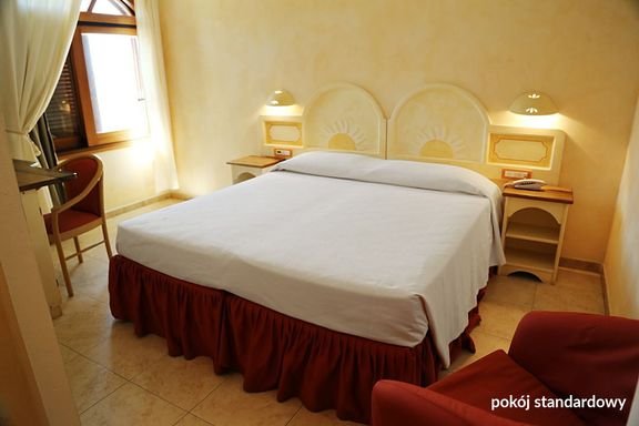 standardowy: 2-os. (możliwość 1 lub 2 dostawek), ok. 22-30 m², funkcjonalnie wyposażony, indywidualnie sterowana klimatyzacja, łazienka (prysznic, wc; suszarka), telewizor, telefon, lodówka, minibar (płatny); łóżeczko dla dziecka do 2 lat (płatne: ok. 50 EUR/tydz.); superior: 2-os. (możliwość 1 lub 2 dostawek), wyposażenie jak w pokoju standardowym, położony na wyższych piętrach hotelu; widok na basen; pokój superior za dopłatą.