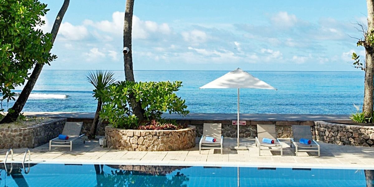 na zachodnim wybrzeżu wyspy Mahé, nad zatoką Barbarons, ok. 20 km od VICTORII, stolicy Seszeli; ok. 16 km od portu lotniczego na Mahé; 25 km od klubu golfowego Reef Club; przystanek autobusowy ok. 100 m od hotelu (Victoria ok. 5 rupii).