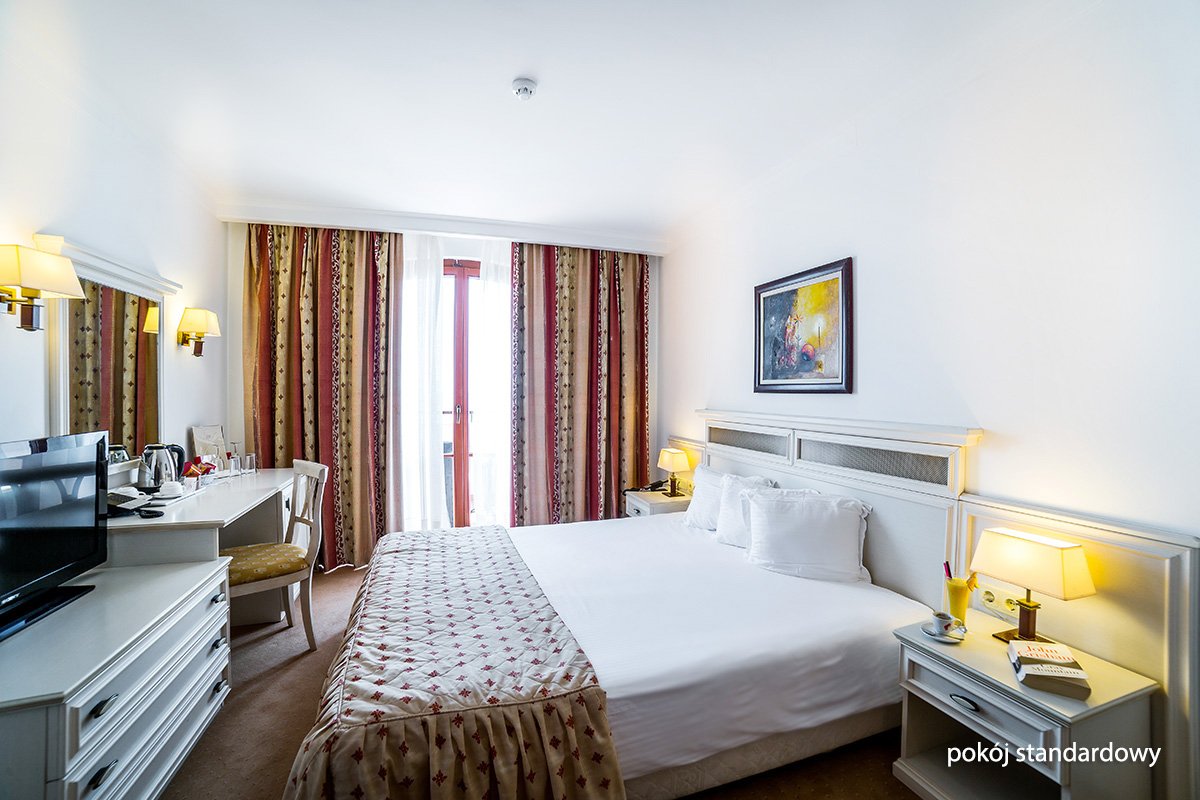 standardowy: 2-os. (możliwość 1 dostawki), ok. 35 m², elegancki i zadbany, klimatyzowany, łazienka (wanna, wc; suszarka), telewizja satelitarna, telefon; łącze internetowe lub bezpłatny internet bezprzewodowy, sejf, minibar (płatny wg konsumpcji); bezpłatne łóżeczko dla dziecka do 2 lat na zamówienie przed przyjazdem; balkon (stolik i krzesełko), widok na morze za dopłatą.