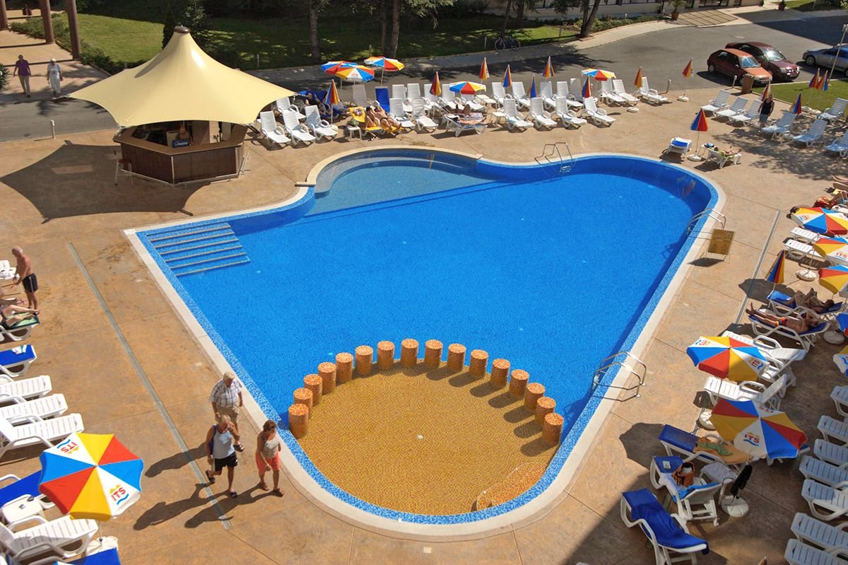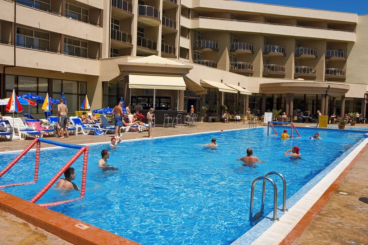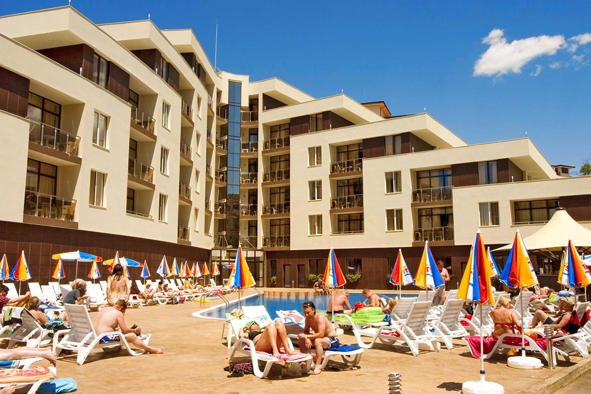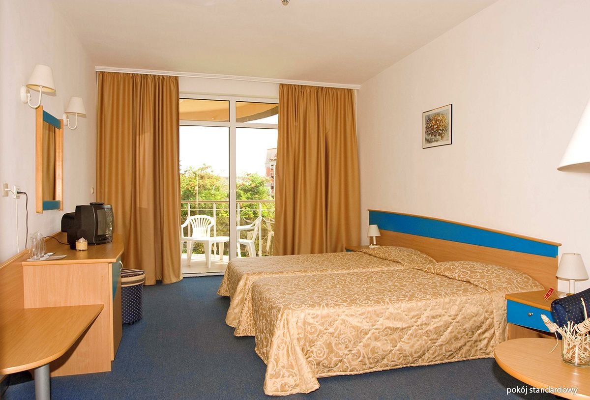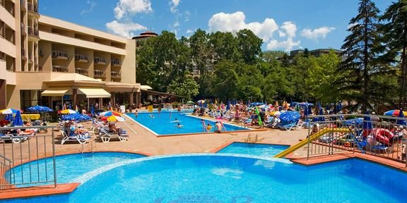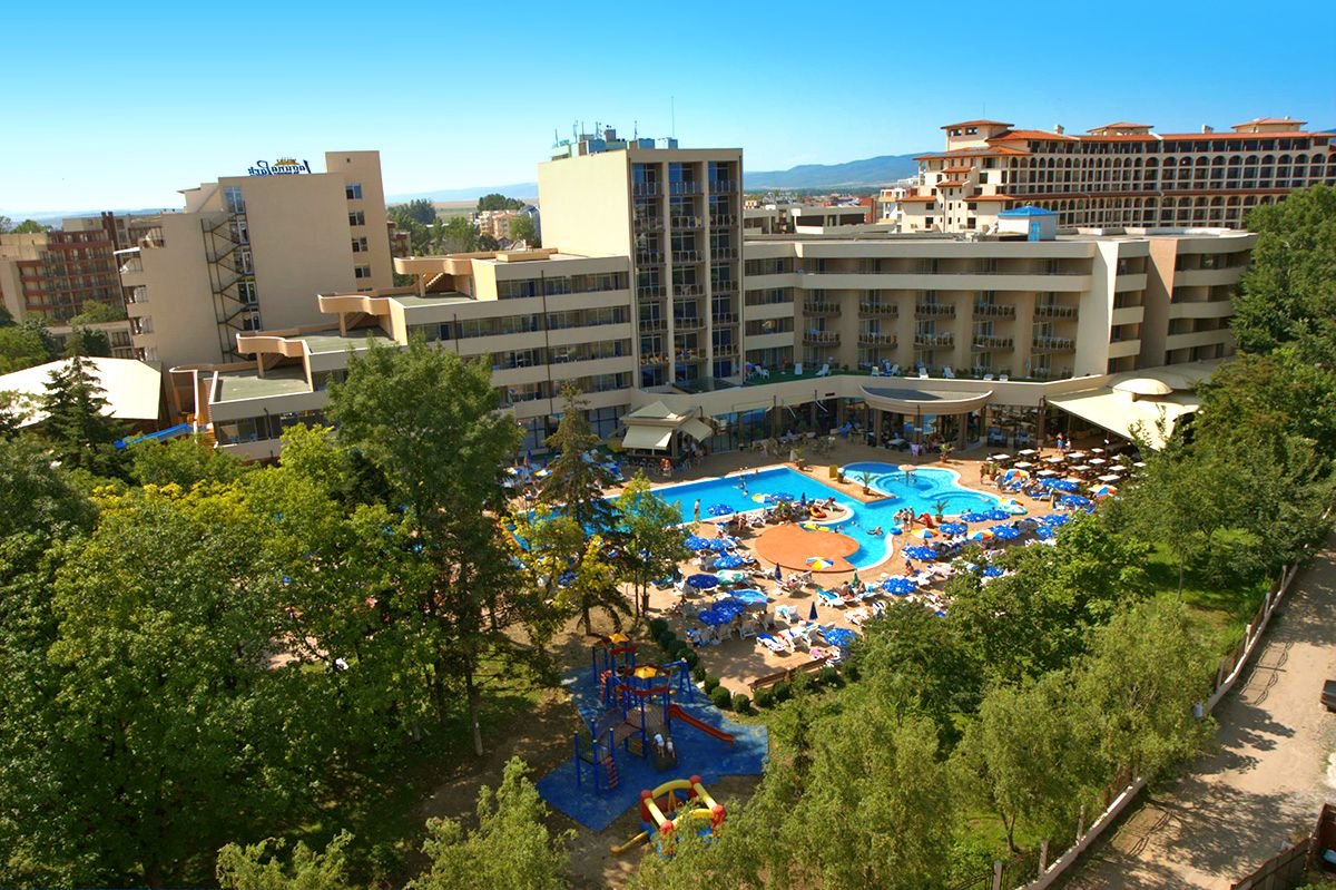 Otoczony zielenią, rodzinny kompleks płożony niedaleko centrum Słonecznego Brzegu i rozrywkowego aquaparku Action. Hotel słynie przede wszystkim z bogatego zaplecza sportowo-rekreacyjnego: fantazyjne baseny ze zjeżdżalnią i tarasem słonecznym, doskonale zorganizowany miniklub i animacje zachwycą nie tylko najmłodszych Gości. W hotelu są zarówno pokoje standardowe, jak i wygodne studia, które pomieszczą nawet 4-os. rodzinę. Blisko stąd również do ładnej, długiej plaży łagodnie opadającej do morza i wyróżnionej Błękitną Flagą.