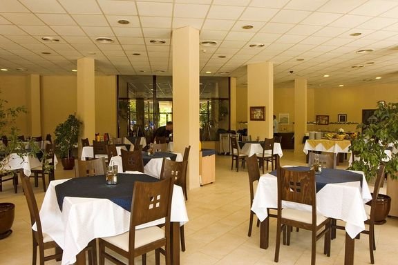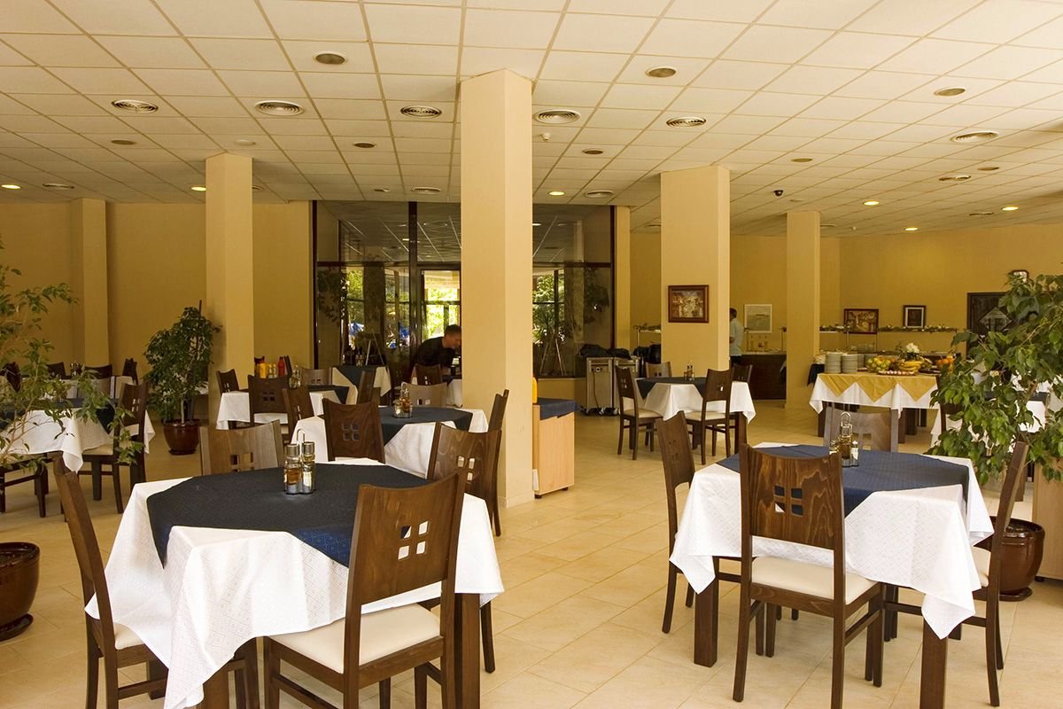 czterogwiazdkowy, zadbany, zbudowany w 2001 r., odnowiony w 2013 r., 365 pokoi, 2 budynki, 7 pięter, 6 wind, przestronne lobby, całodobowa recepcja, restauracja – dania w formie bufetu, kuchnia międzynarodowa, dostępne foteliki dla dzieci, dania wegetariańskie, bar w lobby, bar przy basenie, bar przy 2-gim basenie, snack-bar; punkt wymiany walut; sala konferencyjna dla 50 osób, ogród, bezpłatny internet bezprzewodowy w lobby; za opłatą: punkt internetowy (ok. 5 BGN/godz.), room-service, sejf w recepcji (7 BGN/dzień), fryzjer, pralnia; akceptowane karty kredytowe: Visa, MasterCard, American Express.