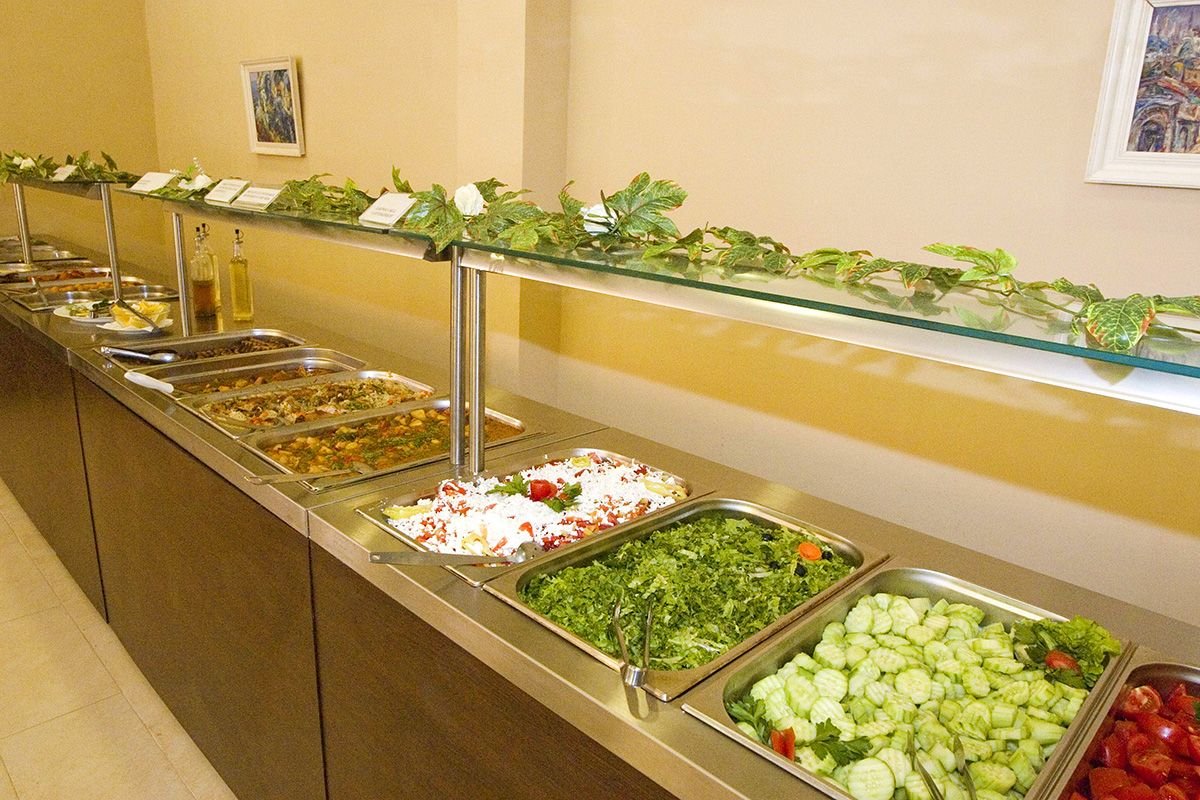 śniadanie (7.00-10.00), obiad (12.00-14.00), kolacja (18.00-21.00) w formie bufetu w restauracji głównej; 2 razy w tygodniu kolacja tematyczna; podwieczorek w barze w lobby (14.00-18.00); przekąski w snack-barze (10.00-18.00); napoje bezalkoholowe i lokalne napoje alkoholowe w barze w lobby i barze przy basenie (10.00-23.00), w snack-barze i barze przy 2-gim basenie (10.00-18.00); wymagane noszenie opasek all inclusive.