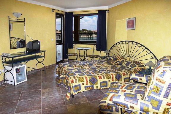 Położony blisko centrum Sozopolu – kulturalnej stolicy wybrzeża i zarazem pełnego wakacyjnych atrakcji kurortu to przyjemne miejsce na rodzinny wypoczynek. Umiejscowiony na klifie z pięknym widokiem na morze i blisko dwóch piaszczystych plaż przypadnie do gustu miłośnikom morskich i słonecznych kąpieli. Do dyspozycji Gości 2 restauracje à la carte, bar w lobby, taras i bezpłatny internet bezprzewodowy na terenie całego hotelu.