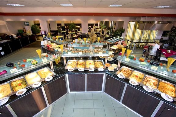 śniadanie (7.30-10.00), obiad (12.30-14.30), kolacja (18.00-20.30) w formie bufetu w restauracji głównej; przekąski (12.30-14.30) i podwieczorek (16.00-17.00) w wyznaczonym barze; lokalne napoje bezalkoholowe i alkoholowe (10.00-23.00) w wyznaczonych barach; wymagane noszenie opasek all inclusive.