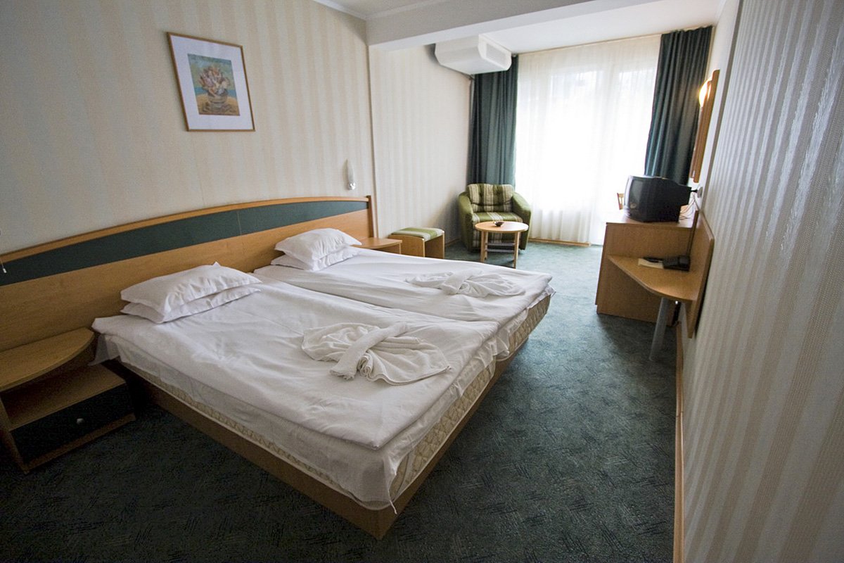 standardowy: 2-os. (możliwość 1 dostawki), ok. 28-30 m², klimatyzowany (w okresie: czerwiec-wrzesień), łazienka (prysznic, wc; suszarka), telewizor, telefon, lodówka; za opłatą: internet bezprzewodowy, łóżeczko dla dziecka do 2 lat na zamówienie przed przyjazdem (ok. 5 BGN/dzień); balkon (stolik, krzesełka); apartament: 2-os. (możliwość 1 lub 2 dostawek, min. 3 os. pełnopłatne), ok. 35 m², wyposażenie jak w pokoju standardowym.