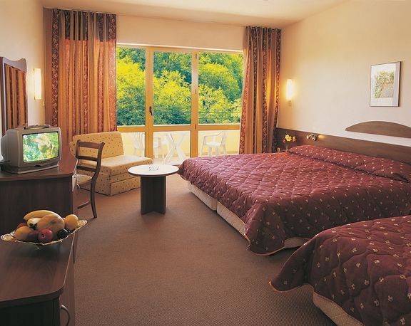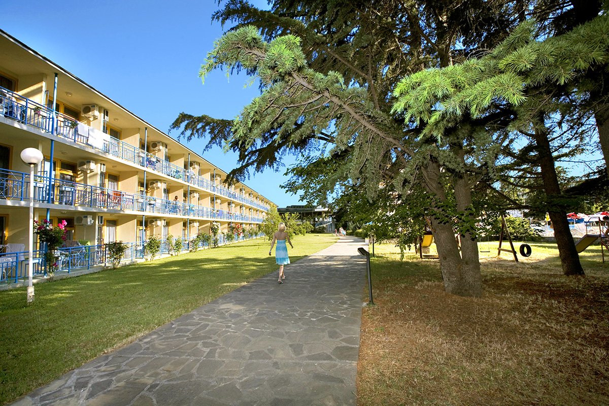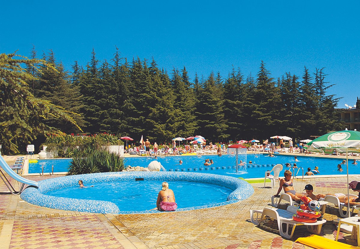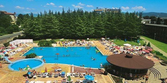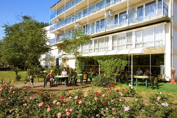 ok. 1,5 km od centrum SŁONECZNEGO BRZEGU, ok. 400 m od sklepów, restauracji i barów, ok. 3 km od Nessebaru; ok. 35 km od portu lotniczego w Burgas, ok. 100 km od portu lotniczego w Warnie; przystanek autobusowy ok. 100 m od hotelu (ok. 6 BGN/ Nessabar); minipociąg do centrum (płatny: 3 BGN w jedną stronę).