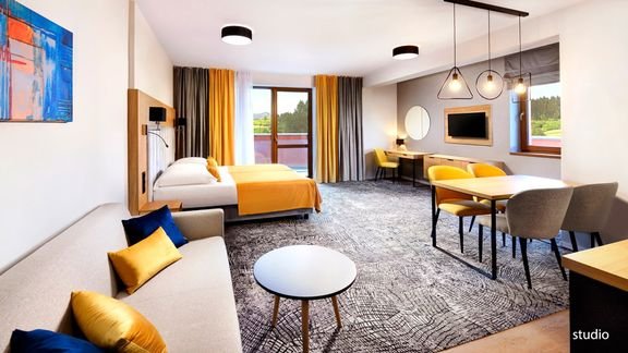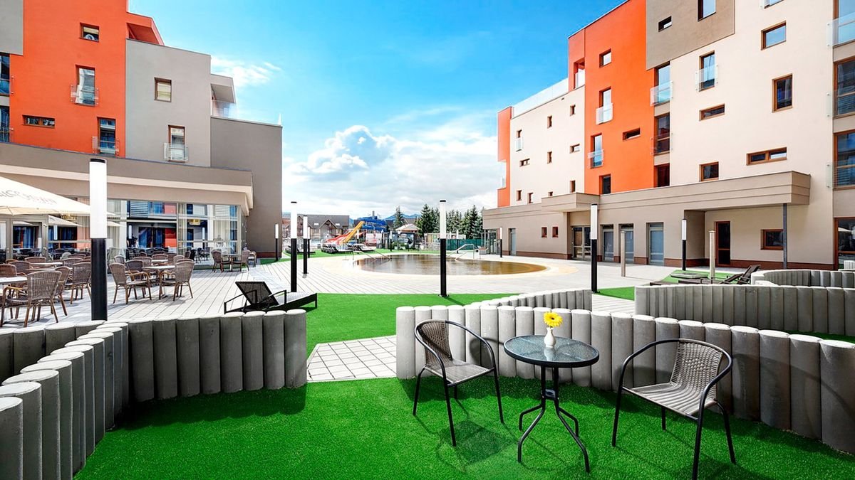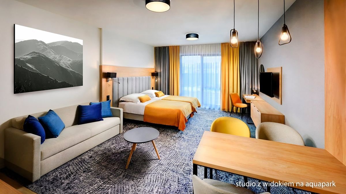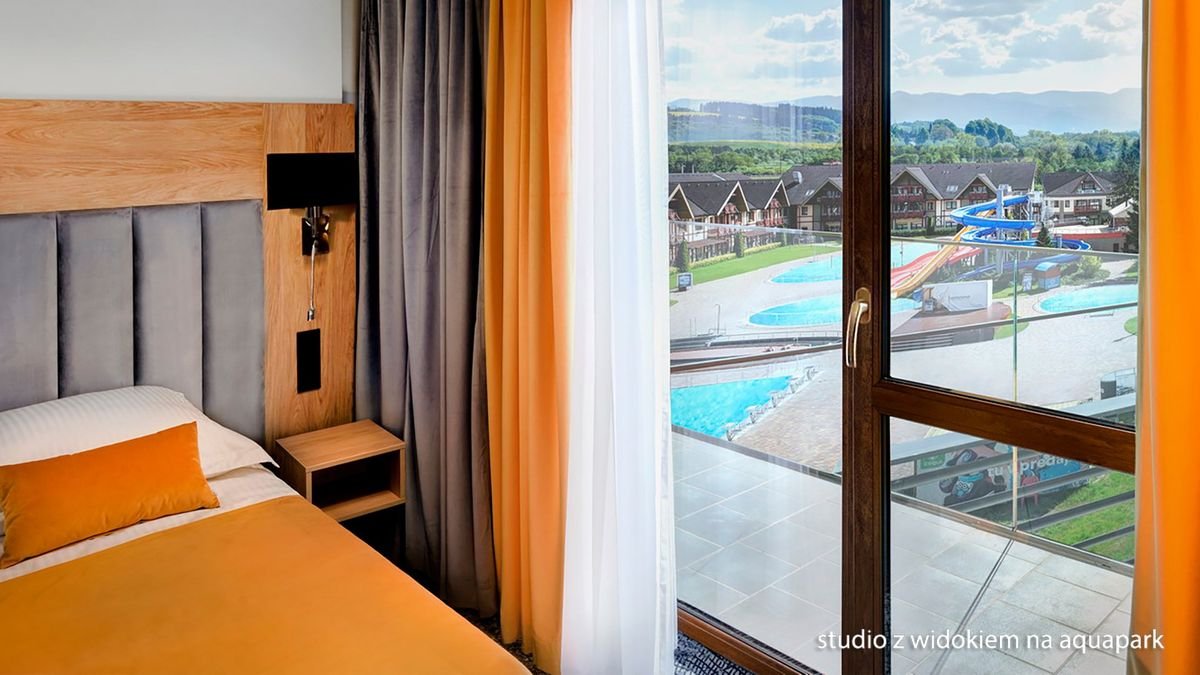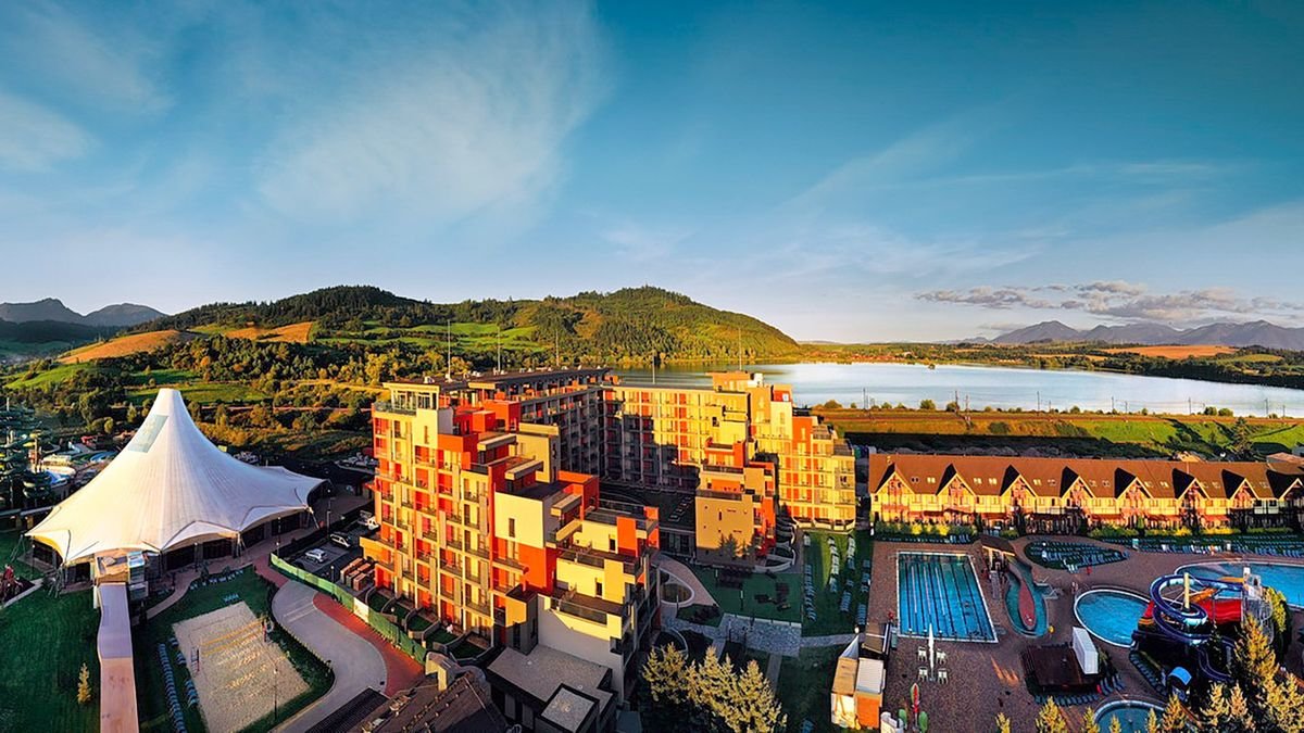 Zapraszamy na aktywne, rodzinne wakacje na terenie słynnego Aquaparku Bešeňová! Nowoczesny hotel, zbudowany w 2021 r., oferuje nie tylko piękne widoki i świetny serwis, ale także nieograniczony dostęp do basenów termalnych i mnóstwa innych wodnych atrakcji. Na miejscu jest restauracja i 2 bary, bezpłatny parking oraz dostęp do internetu, a stylowo urządzone, eleganckie pokoje są przestronne i wyposażone w aneksy kuchenne. Goście mogą również korzystać z centrum wellness i zrelaksować się po aktywnym dniu – sauny, jacuzzi i szeroka gama zabiegów pielęgnacyjnych pozwolą zadbać o dobry nastrój podczas urlopu. Warto także wybrać się na wycieczkę po malowniczej, zielonej okolicy, do Tatralandii lub słynnej Jaskini Lodowej.