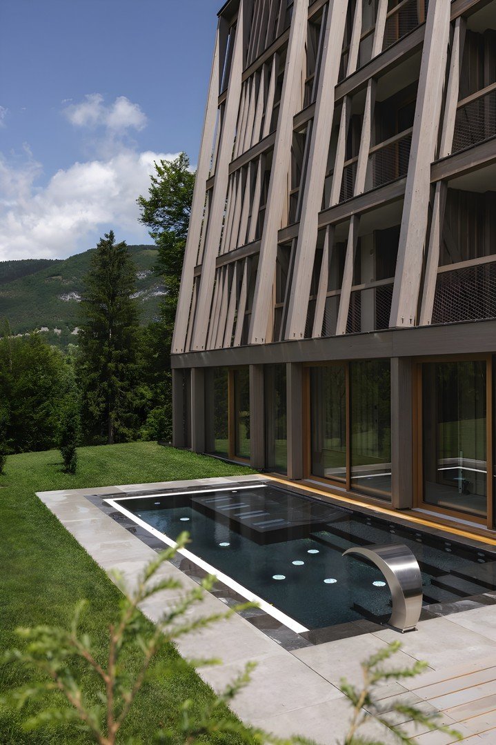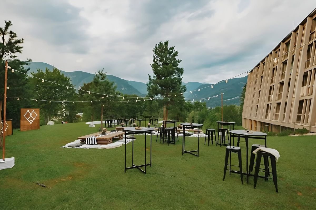 Prawdziwy raj dla miłośników pięknych krajobrazów, ciszy i aktywnego wypoczynku. Malowniczo położony przy największym jeziorze w Słowenii – Bohinj, harmonijnie wkomponowany w otoczenie górskich szczytów, jest idealnym miejscem na urlop blisko natury. Na miejscu znajdziesz wszystko co niezbędne do pełnego relaksu: pięknie urządzone pokoje, stylową restaurację, winiarnię w piwnicy, a także profesjonalne spa. Wyróżniający się nowoczesną architekturą inspirowaną lokalną tradycją, zapewnia wysoki standard usług oraz bliskość Parku Narodowego Triglav. Zjedz zdrowe śniadanie przygotowane z lokalnych produktów, weź energetyzującą kąpiel w basenie z widokiem na góry i ruszaj w drogę zdobywać okoliczne szczyty!