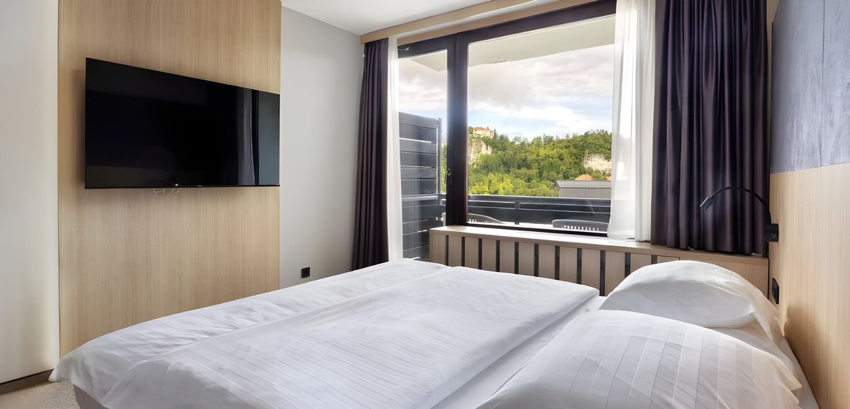 Położony w malowniczej okolicy, w samym sercu centrum Bled, to idealne miejsce na relaksujący wypoczynek. Na Gości czeka tu nowoczesne centrum spa z jacuzzi i basenem, z którego roztaczają się piękne widoki. Hotelowy taras to doskonałe miejsce na chwilę wytchnienia przy kawie i podziwianie bajkowego krajobrazu z jeziorem Bled w roli głównej. Każdego ranka w restauracji serwowane są pyszne śniadania, które dodadzą energii na cały dzień zwiedzania.