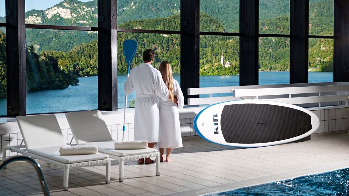 Tutaj odpoczniesz od codziennego zgiełku w pięknych okolicznościach przyrody! Wspaniale położony nad jeziorem, tuż przy promenadzie, oferuje zapierające dech widoki na jezioro Bled i Alpy Julijskie. Nowoczesny, doskonale łączy komfort z miejską elegancją. Na miejscu jest kryty basen oraz centrum wellness z siłownią, Goście mogą także korzystać z kompleksu basenów i saun w sąsiednim hotelu Rikli Balance. Koniecznie odwiedź pobliski zamek Bled – najstarszy zamek na Słowenii.