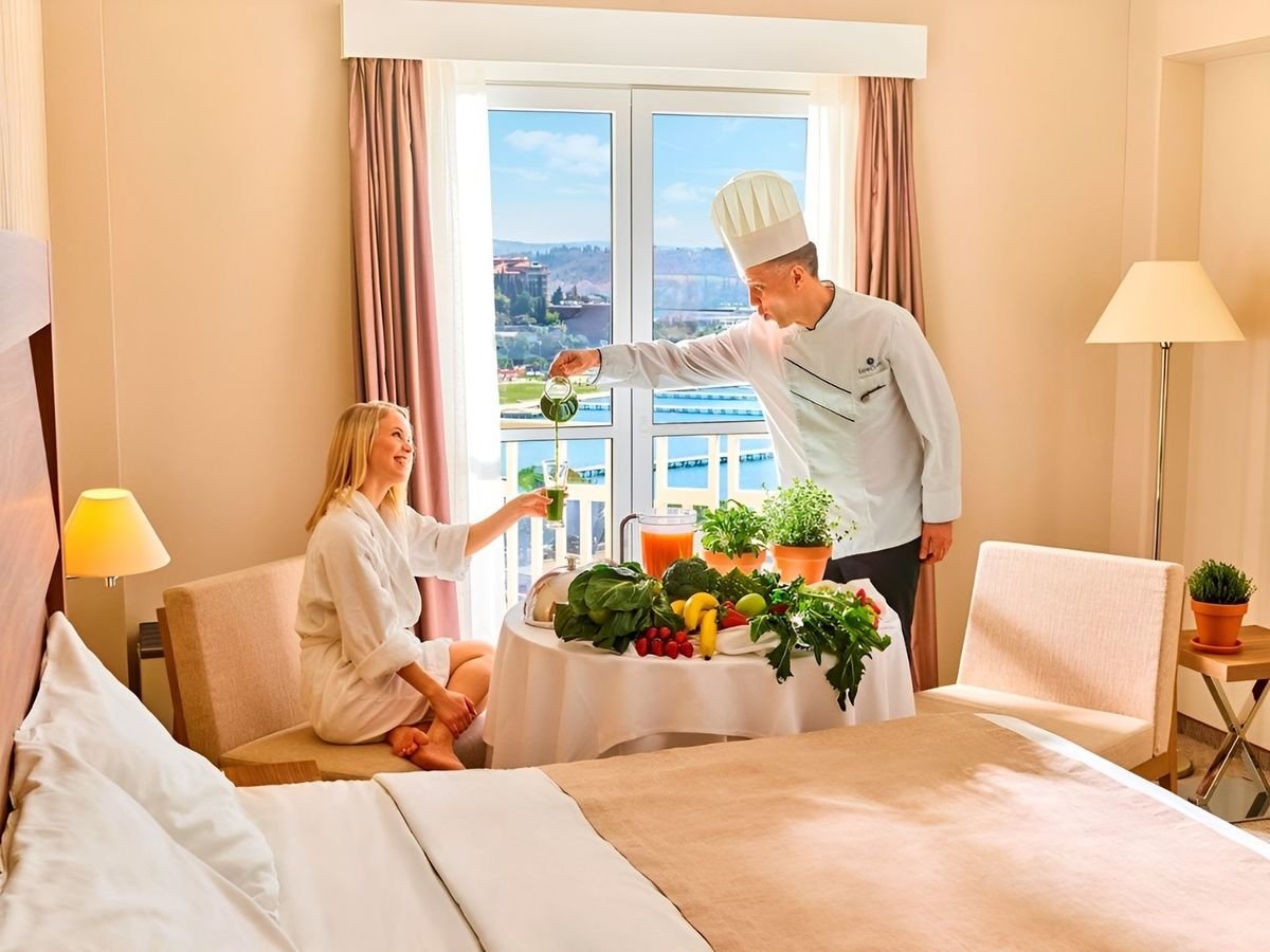 Słońce, zapach morza i wszystko na wyciągnięcie ręki – brzmi dobrze? W samym centrum Portorož, kilka kroków od plaży, czeka miejsce idealne na wakacyjny reset! Należący do kompleksu LifeClass Hotel & Spa, oferuje szeroki wachlarz wygód, które sprostają oczekiwaniom nawet najbardziej wymagających Gości. Na miejscu czeka bogata oferta gastronomiczna, baseny, a także funkcjonalne i wygodne pokoje, których wystrój inspirowany jest aromatycznymi ziołami śródziemnomorskimi, takimi jak lawenda czy bazylia – idealne, by naładować baterie po dniu pełnym urlopowych atrakcji.