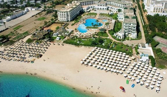 pięciogwiazdkowy, zbudowany w 1995 r., odnowiony w 2000 r.; 388 pokoi, 4 piętra, 6 wind; przestronne lobby, całodobowa recepcja; restauracja główna Maritime, posiłki główne w formie bufetu, kuchnia międzynarodowa, dostępne foteliki dla dzieci; restauracja à la carte Bellevue, kuchnia marokańska, włoska i azjatycka, dostępne dania wegetariańskie; pizzeria Belle Etoile, kuchnia włoska; restauracja barbecue Beau Rivage; bar główny Corail, piano-bar Grand Bleu, bar przy basenie, bar przy plaży, kawiarnia mauretańska Les Arcades, klub nocny Sirocco; kantor, sklepy: prasa, kartki pocztowe, pamiątki, ubrania, kosmetyki, sejf w recepcji; centrum konferencyjne dla 450 osób: 1 duża sala konferencyjna, 3 mniejsze sale, sprzęt audiowizualny, obsługa techniczna; bezpłatny bezprzewodowy internet (ograniczony zasięg); za opłatą: room-service, pralnia, wypożyczalnia samochodów, opiekunka do dziecka (10 TND/godz.); udogodnienia dla niepełnosprawnych; akceptowane karty kredytowe: Visa, MasterCard.