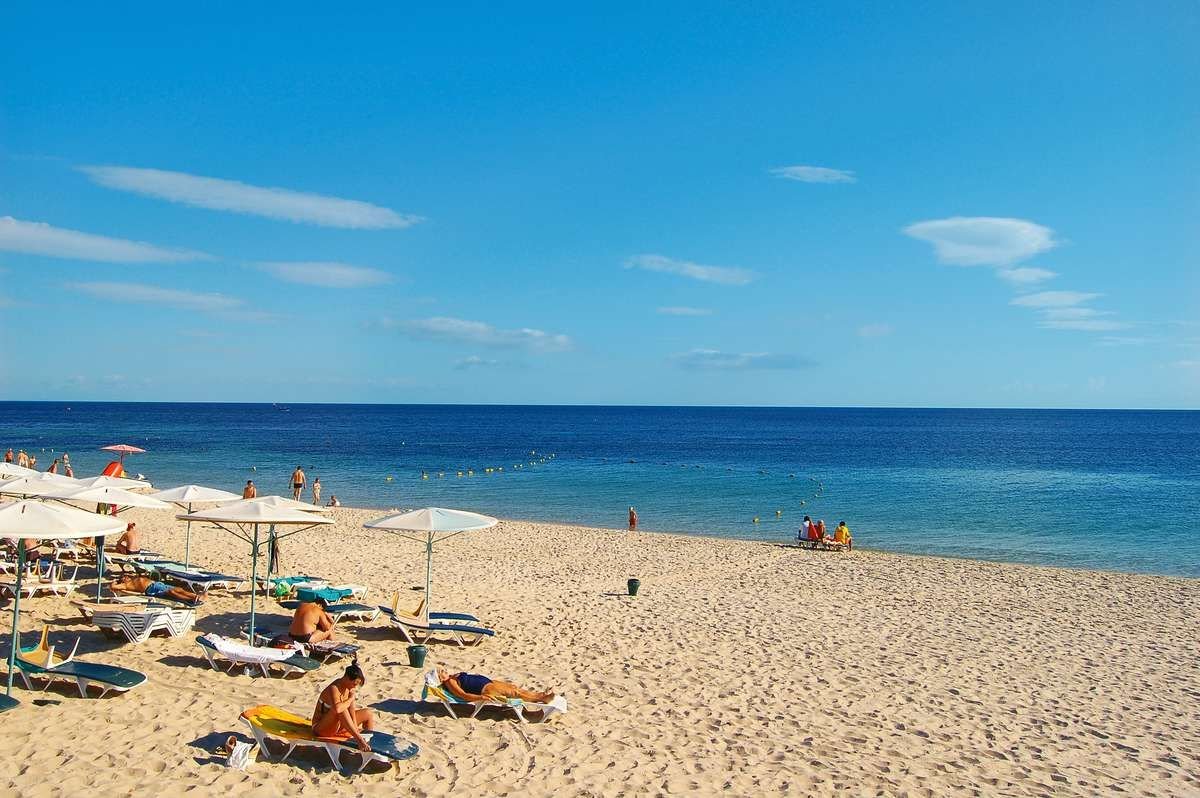 El Kantaoui Beach, hotelowa, ładna, piaszczysta i szeroka, łagodne zejście do morza; bezpośrednio przy hotelu, leżaki, materace i parasole bezpłatne, ręczniki plażowe za kaucją (15 TND); sporty wodne (płatne).