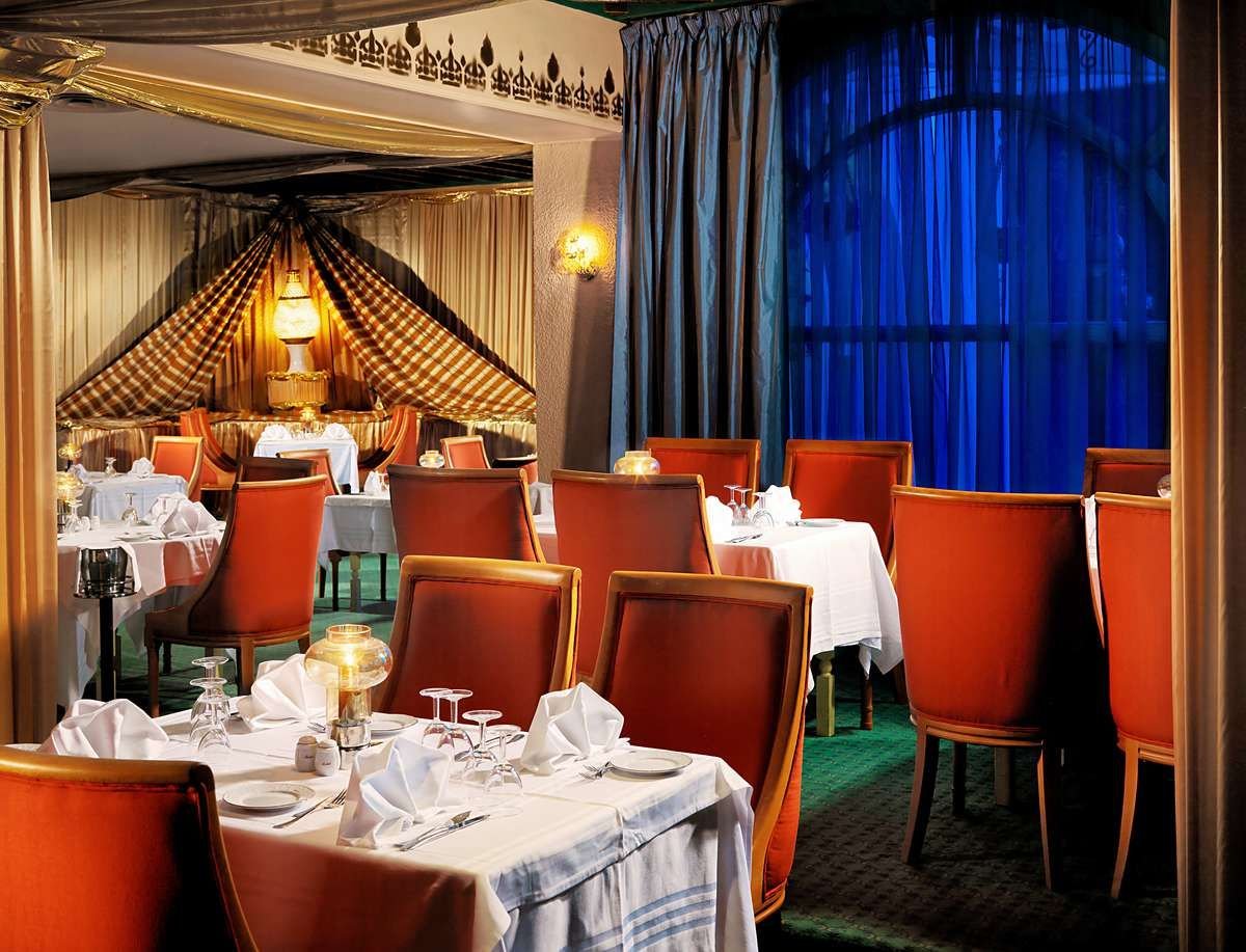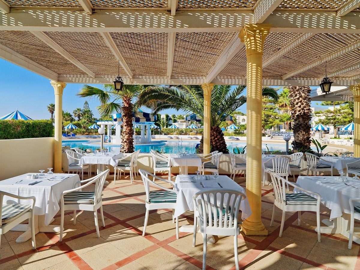 czterogwiazdkowy, stylowy, zbudowany w 1981 r., całkowicie odnowiony w 2012 r., budynek główny, łącznie 301 pokoi, 3 piętra, winda, przestronne i eleganckie lobby, całodobowa recepcja, restauracje: główna Alahambra – dania w formie bufetu, kuchnia międzynarodowa, dania wegetariańskie, live cooking show, restauracja à la carte Le Rebeb – kuchnia tunezyjska, w restauracjach dostępne foteliki dla dzieci; 3 bary: Le Rimel snack-bar przy basenie, Le Boutre w lobby, bar na plaży (czynny w sezonie letnim), kawiarnia mauretańska La Chicha Cafe, kantor, minimarket, sklepy z pamiątkami; centrum konferencyjne, bezpłatny internet bezprzewodowy w lobby; za opłatą: punkt internetowy (ok. 6 TND/30 min, 10 TND/godz.), sejf w recepcji (3,5 TND/dzień), room-service, pralnia, opiekunka dla dziecka, wypożyczalnia samochodów; udogodnienia i pokoje dla niepełnosprawnych; akceptowane karty kredytowe: Visa, MasterCard.