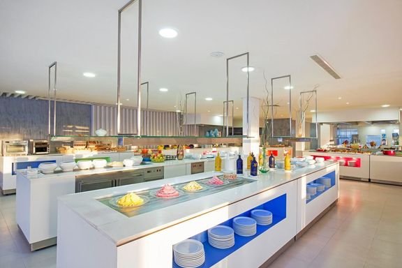 śniadanie (7.00-10.00), obiad (12.30-14.30), kolacja (18.30-21.30) w formie bufetu w restauracji głównej; późne śniadanie w barze w lobby (10.00-11.30); woda mineralna, zimne napoje bezalkoholowe, lokalne wino i piwo do obiadu i kolacji; przekąski: pizza, pasta, kanapki, ciasta w barze przy basenie (10.00-18.00); kawa, herbata, zimne napoje bezalkoholowe, lokalne alkohole w wyznaczonych barach (10.00-23.00); raz na pobyt kolacja w restauracji à la carte (wymagana wcześniejsza rezerwacja); wymagane noszenie opasek all inclusive.