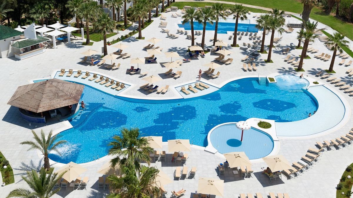 basen, nieregularny kształt, słodka woda, 225 m², gł. 0,8-3,2 m; basen dla dzieci, okrągły, 12 m², głębokość: 0,4 m; przy basenie bezpłatne parasole, leżaki i materace, ręczniki za kaucją (ok. 10 TND); kryty basen, 128 m², gł. 0,8-1,85 m; plac zabaw dla dzieci, miniklub (6-12 lat), wieczorne programy animacyjne dla dorosłych; za opłatą: 2 korty tenisowe (ok. 20 TND/godz.), siłownia (ok. 14 TND/wejście), mini-golf (ok. 12 TND/godz.), squash, centrum spa: masaże, jacuzzi, sauna, hammam.