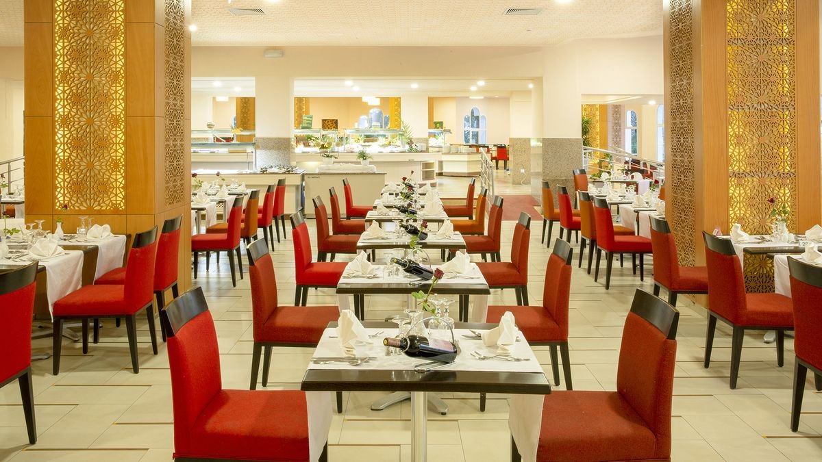 czterogwiazdkowy, przestronny, sezonowo odnawiany, 333 pokoje, 7 pięter, 4 windy, eleganckie i przestronne lobby, całodobowa recepcja, restauracja główna - posiłki główne w formie bufetu, kuchnia międzynarodowa, dostępne foteliki dla dzieci, restauracja à la carte, restauracja barbecue, snack-bar przy recepcji, american bar, bar przy basenie, bar na plaży, kawiarnia mauretańska, klub nocny; kantor; centrum konferencyjne: duża sala konferencyjna dla maks. 300 os. oraz 3 mniejsze pokoje konferencyjne – dla 30 os. każdy, bezpłatny internet bezprzewodowy na terenie całego hotelu; za opłatą: sejf przy recepcji (ok. 2 TND/dzień), fryzjer, wypożyczalnia samochodów; akceptowane karty kredytowe: Visa, MasterCard, American Express.