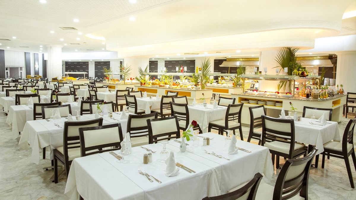 śniadanie (7.00-10.00), obiad (12.30-14.00), kolacja (18.30-20.30) w formie bufetu w restauracji głównej; późne śniadanie kontynentalne (10.00-11.30) w snack barze; przekąski: frytki i pizza (12.00-15.00) w restauracji barbecue przy plaży; podwieczorek (15.00-17.00) w snack¬ barze; napoje bezalkoholowe i lokalne alkohole (10.00-24.00) w wyznaczonych barach; dodatkowo: kort tenisowy i minigolf (za kaucją: 20 TND, wymagana wcześniejsza rezerwacja), wstęp do sauny, jacuzzi, fitness.