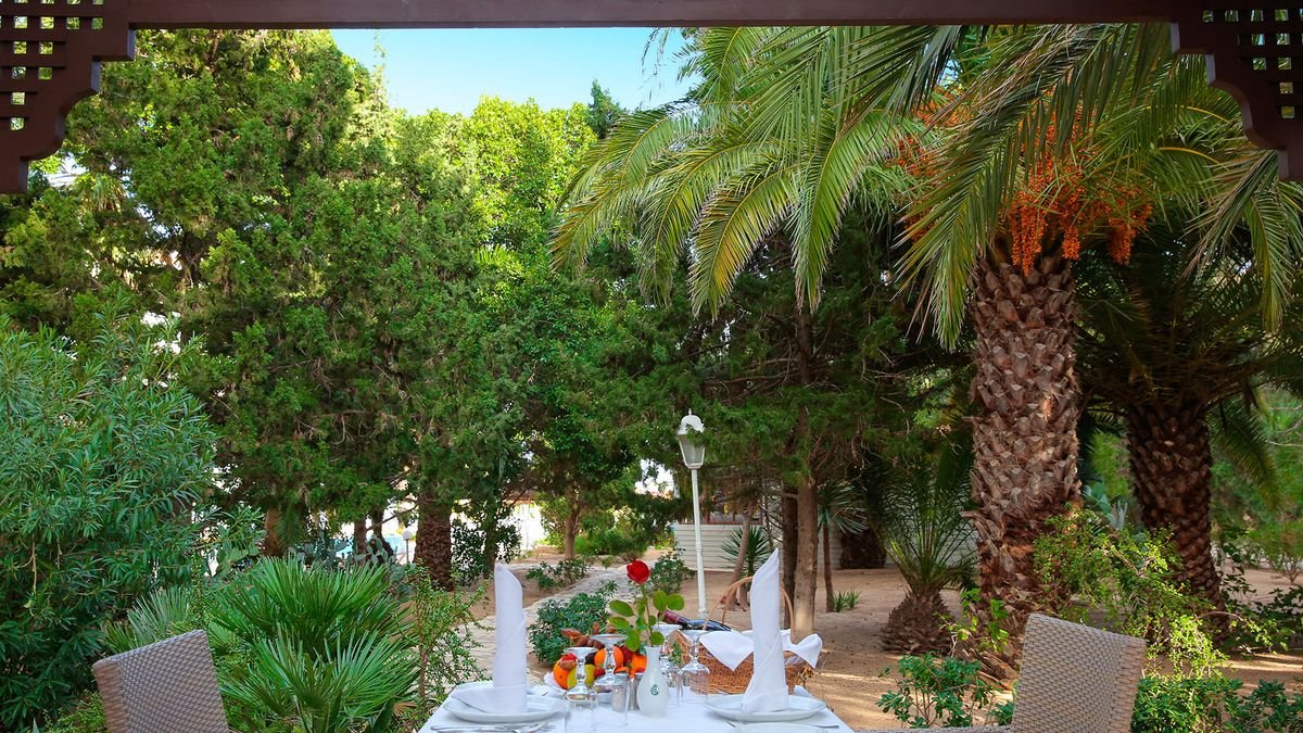 śniadanie (6.00-10.00), obiad (12.30-14.00), kolacja (18.30-21.00) w formie bufetu w restauracji głównej; późne śniadanie kontynentalne (10.00-11.30) w snack barze; przekąski: frytki i pizza (12.00-15.00) w barbecue przy plaży; podwieczorek (15.00-17.00) w snack barze; napoje bezalkoholowe i lokalne alkohole (10.00-24.00) w wyznaczonych barach; dodatkowo: tenis ziemny i minigolf (za kaucją: ok. 20 TND; wymagana wcześniejsza rezerwacja), sauna, jacuzzi, fitness.