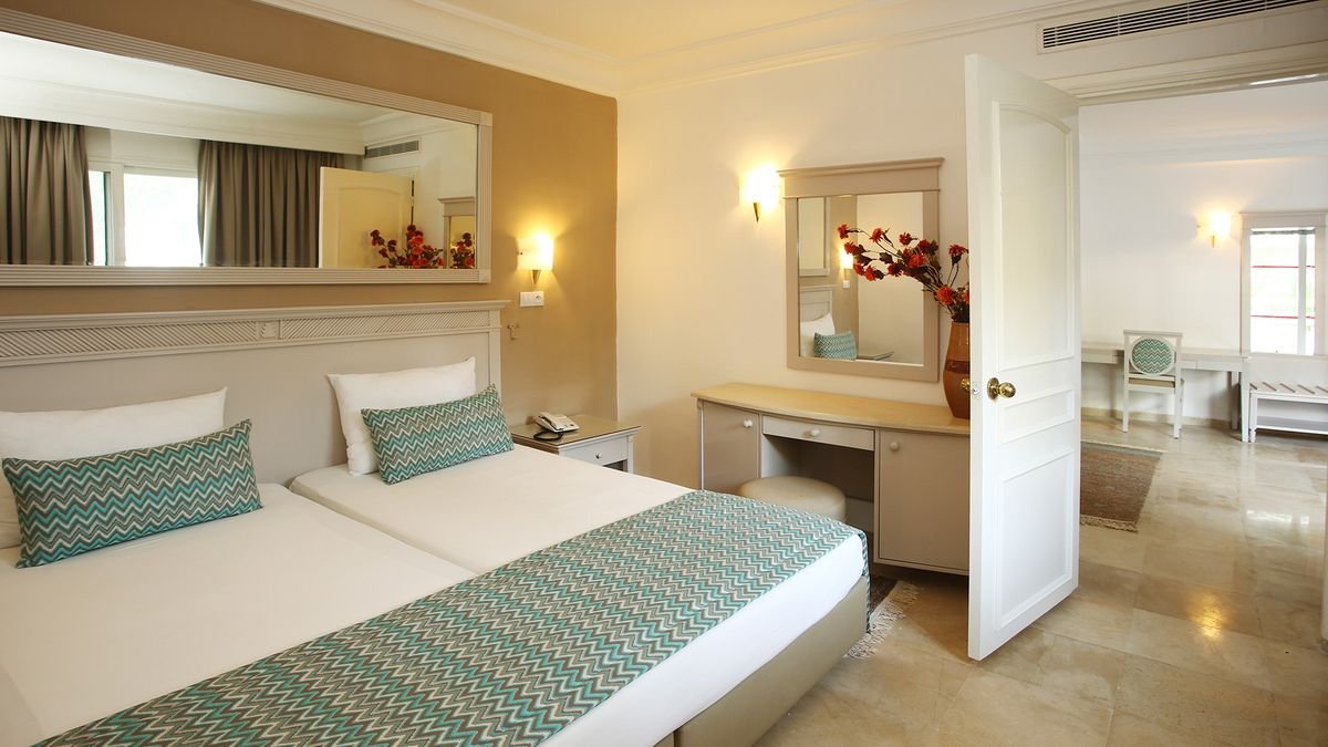 standardowy: 2-os. (możliwość 1 lub 2 dostawek dla dzieci – łóżko piętrowe), ok. 20 m², klimatyzowany, łazienka (wanna, wc; suszarka), bezpłatny internet bezprzewodowy, telewizja satelitarna, telefon, lodówka; za opłatą: sejf (2 TND/dzień); bezpłatne łóżeczko dla dziecka do 2 lat na zamówienie przed przyjazdem; balkon (stolik i krzesełka).