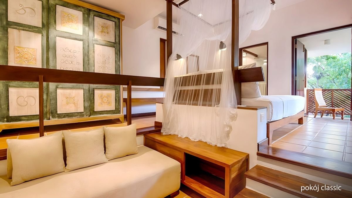 Zapraszamy na spokojny wypoczynek w ajurwedyjskim hotelu tylko dla dorosłych. Na miejscu panuje kameralna atmosfera, dzięki czemu możesz w pełni cieszyć się fantastycznymi wakacjami. Położony blisko plaży i w bujnym ogrodzie kusi także rustykalną architekturą, która doskonale współgra z naturalnym otoczeniem. Do dyspozycji Gości przygotowano basen a także zajęcia jogi i muzykoterapii. Dopełnieniem udanego wypoczynku są miła i pomocna obsługa, która dopełni wszelkich starań, aby Twój pobyt był niezapomniany, a także restauracja serwująca tylko dania wegetariańskie i wegańskie.