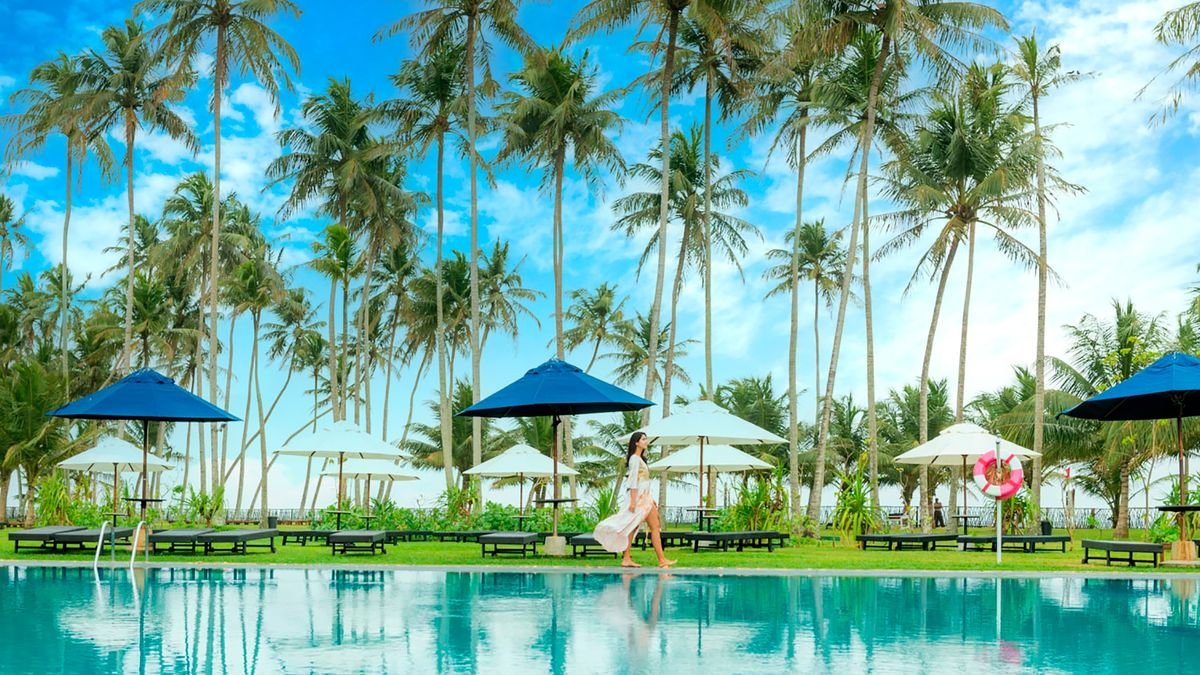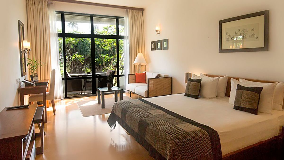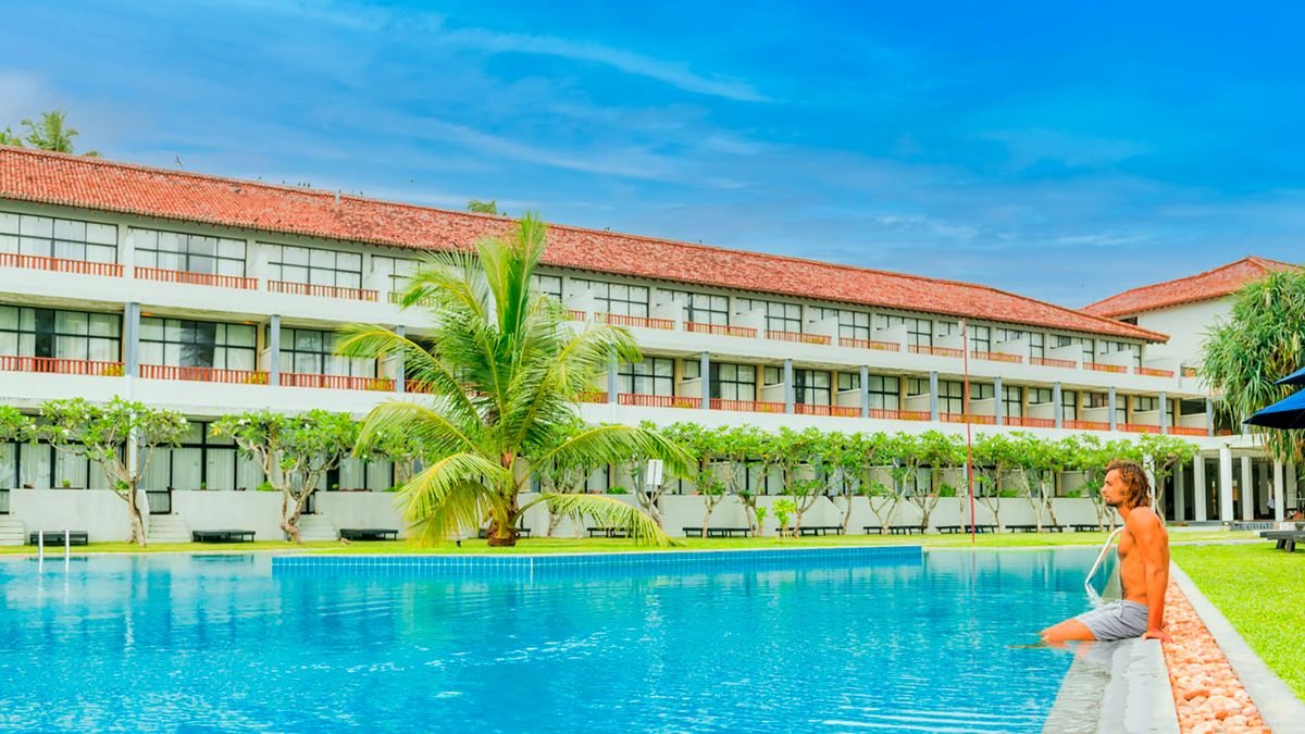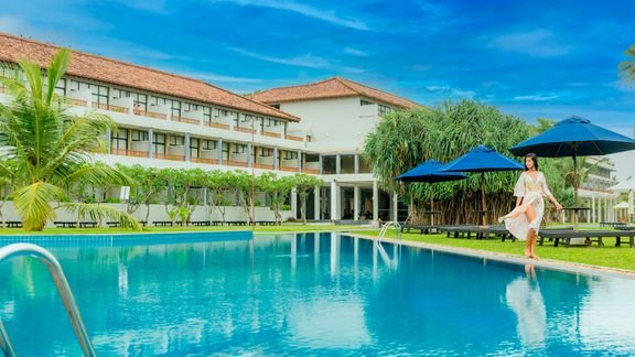 Błękitna woda, zgodnie z nazwą hotelu, dominuje w nowoczesnej, minimalistycznej architekturze tego wyjątkowo eleganckiego miejsca, pomysłu architekta Geoffreya Bawy. Duży basen o niespotykanym kształcie, stawy, kaskady, fontanny i strumienie idealnie harmonizują z kolonialną architekturą budynków hotelowych z otwartymi dziedzińcami i kolumnowymi korytarzami. Cieszą oczy wypielęgnowane trawniki i wysokie palmy kokosowe w ogrodzie, który dochodzi do egzotycznej, piaszczystej plaży. Wspaniała sceneria na romantyczną randkę, znakomite miejsce na relaks z przyjaciółmi. Stylowe, nieskazitelnie czyste pokoje wyposażone są we wszystkie wygody. Goście doceniają znakomitą i urozmaiconą kuchnię z lokalnymi potrawami i wykwintnymi daniami kuchni świata.