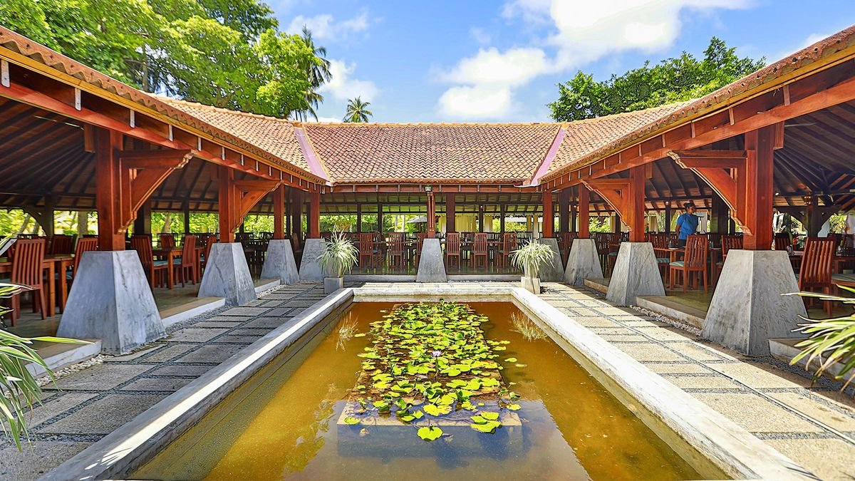 Przepięknie położony przy złotej plaży, która zaczyna się tam, gdzie kończą się hotelowe trawniki. Bardzo zadbany ogród ma ponad 30 000 m², są tu strumyki ze złotymi rybkami, zadaszone alejki, małe stawy i lekka, mała drewniana architektura ogrodowa, dodająca orientalnych smaczków. Cały hotel jest bardzo ładnie zdobiony drewnem tekowym, a pokoje zostały wyposażone w proste eleganckie meble. Każdy Gość może tu od rana cieszyć się pięknym widokiem, a zasypiać przy szumie fal – wszystkie pokoje mają widok na morze. 4 gwiazdki na medal!