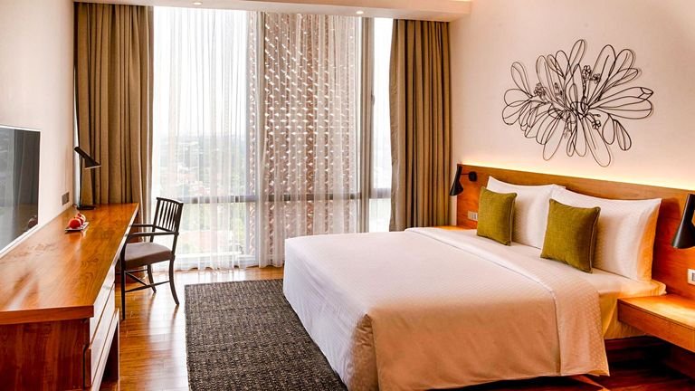 Odkryj pięciogwiazdkowy raj w sercu Kolombo, wypoczywaj, zwiedzaj i ciesz się luksusowymi wakacjami na Sri Lance! Typowo miejski, położony blisko centrum, łączy niezwykłą elegancję z ciepłą gościnnością i oferuje całą masę udogodnień, w tym stylowo zaprojektowane pokoje z widokiem na ekskluzywną dzielnicę Cinnamon Gardens. Idealny zarówno na wczasy, jak i dla podróżujących służbowo – czeka tu dobrze wyposażona sala konferencyjna, centrum spa, basen infinity z zapierającym dech widokiem na miasto i bar na dachu, jeden z najwyżej położonych w Kolombo. To idealne miejsce na błogi relaks z dala od zgiełku, a jednocześnie zaledwie kilka kroków od miejscowych atrakcji i w odległości dłuższego spaceru od pięknej plaży Galle Face ze złotym piaskiem.