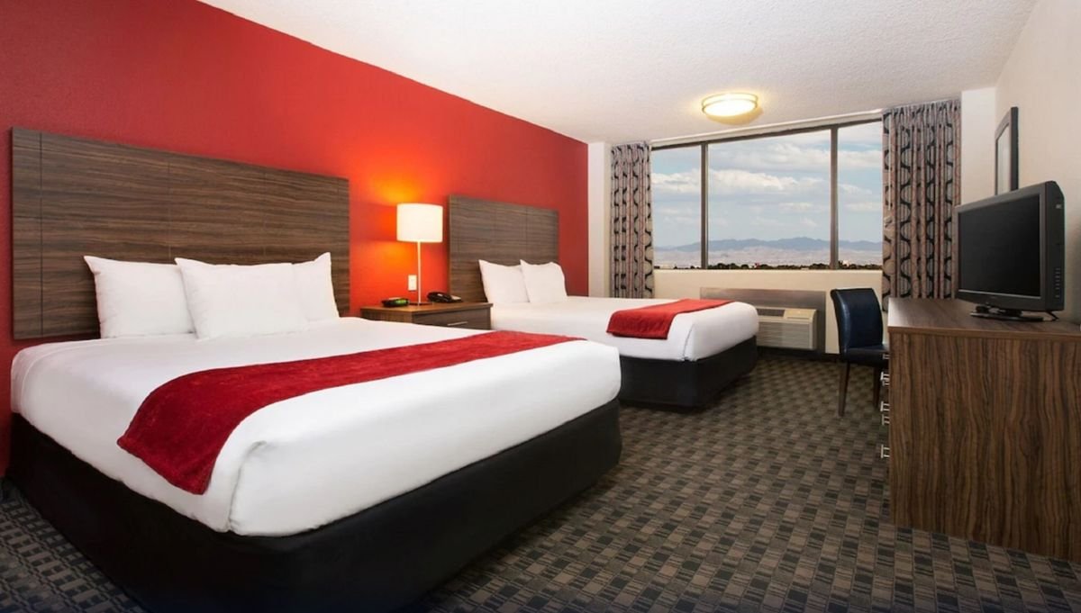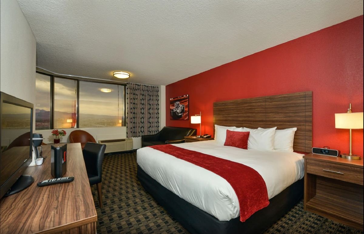 Położony niedaleko tętniącego życiem bulwaru Las Vegas Strip i obleganej przez miłośników całonocnej zabawy Fremont Street, zaprasza na niezapomniany wypad do światowej stolicy rozrywki. Elegancki i przestronny, zachwyca nieszablonowymi wnętrzami, na miejscu są 3 restauracje, w których spróbujesz typowych, amerykańskich dań oraz 4 bary z szeroką ofertą koktajli z różnych stron świata. Czym byłby prawdziwy wypad do Vegas bez odwiedzenia salonu gier? Tutaj nie musisz się tym martwić. W hotelu czeka na Ciebie dwupiętrowe, dobrze wyposażone kasyno, pełne automatów oraz stołów do ruletki. W okolicy jest mnóstwo ciekawych atrakcji, warto wybrać się do kolorowego Muzeum Neonów i obejrzeć wspaniały pokaz fontann Bellagio.