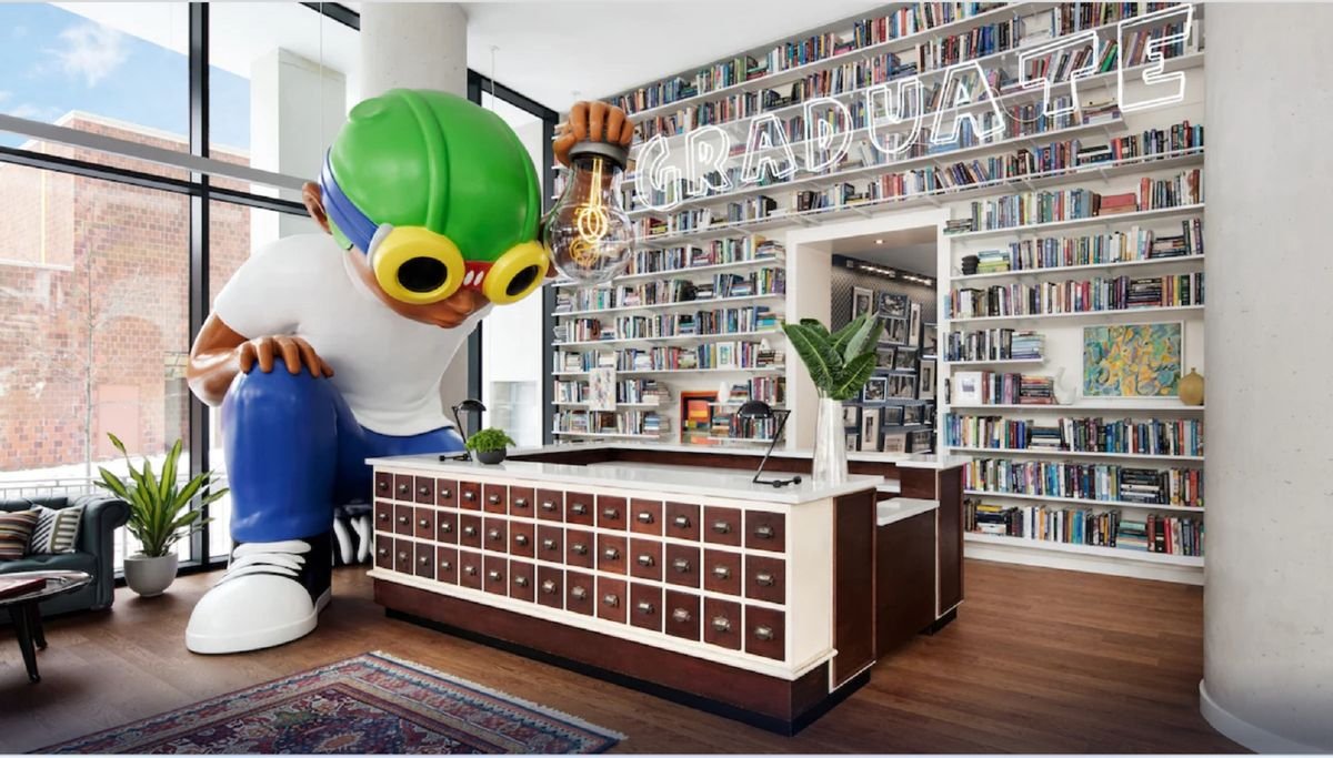 Zakochaj się w Nowym Jorku i zrób sobie przerwę od codzienności w komfortowym, wyjątkowym hotelu na terenie kampusu Cornell Tech. Zaprojektowany przez znaną na całym świecie firmę projektową Snøhetta łączy w sobie jasne, nowoczesne wnętrza z malowniczymi widokami na Manhattan i Queens. Tutaj stara szkoła spotyka się z New Age, a futurystyczne motywy i popowe kolory mieszają się z historią wyspy Roosevelt, na której Graduate Roosevelt Island jest pierwszym i jedynym hotelem. W hotelu wita 4-metrowy posąg kultowego Flyboya artysty Hebru Brantleya, robi wrażenie oryginalny hol z półkami książek aż do sufitu, podobają się stylowe, gustowne pokoje. Tu zobaczysz NYC z nowej perspektywy!