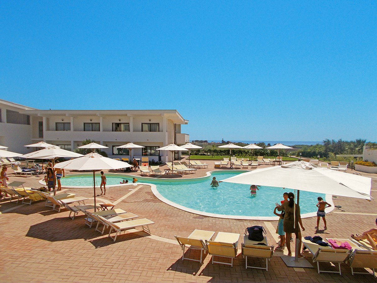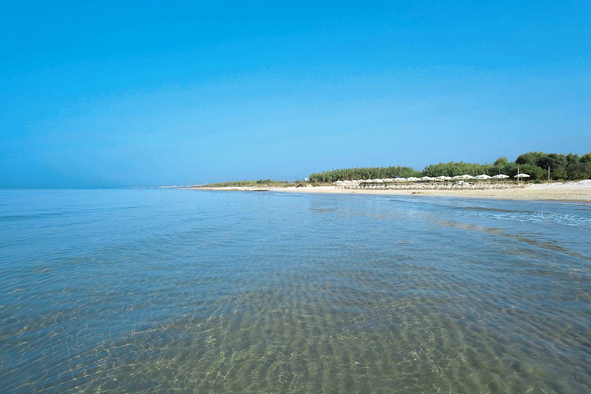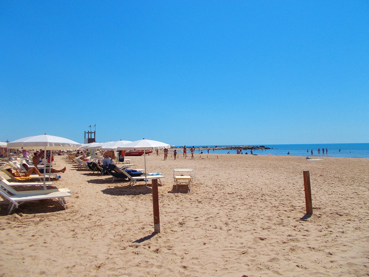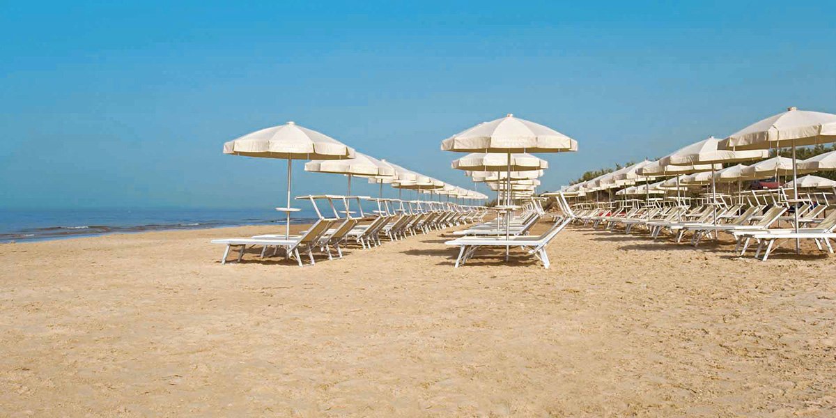 szeroka, piaszczysta, ok. 700 m od hotelu, dojście piechotą lub dojazd bezpłatnym busem hotelowym (o okresie kursowania decyduje hotel), bezpłatne parasole, leżaki i ręczniki plażowe; wokół plaży znajduje się rezerwat makii śródziemnomorskiej (Riserva naturale Macchia Foresta del Fiume Irminio).