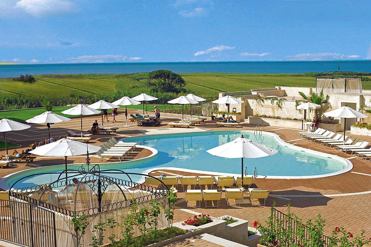 w południowej części Sycylii, w spokojnym miejscu, ok. 4 km do miejscowości Donnalucata, ok. 6 km od słynnego Marina di Ragusa, ok. 30 km od zabytkowego miasta RAGUSA; ok. 35 km od portu lotniczego w Comiso; bus hotelowy do Mariny di Ragusa i Donnalucaty (płatny ; 15.06-15.09, o częstotliwości i okresie kursowania decyduje hotel).