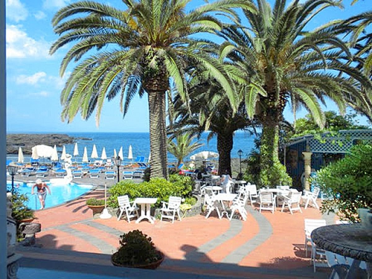 trzygwiazdkowy, zadbany i stylowy, zbudowany w 1970 r., sezonowo odnawiany, 51 pokoi, 1 budynek, 3 piętra, winda; małe lobby, całodobowa recepcja, restauracja – dania w formie bufetu i à la carte, kuchnia sycylijska, dostępne menu dla dzieci, dania wegetariańskie, American Bar i Snack Bar; sejf w recepcji, taras z widokiem na zatokę Naxos; za opłatą: bezprzewodowy internet w lobby; akceptowane karty kredytowe: Visa, MasterCard, American Express, Diners Club.
