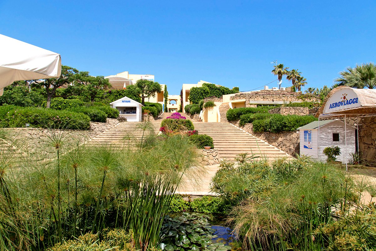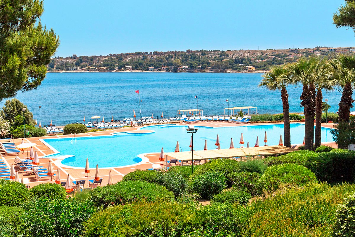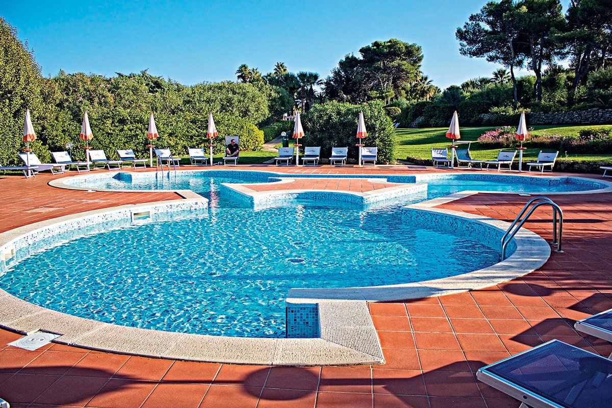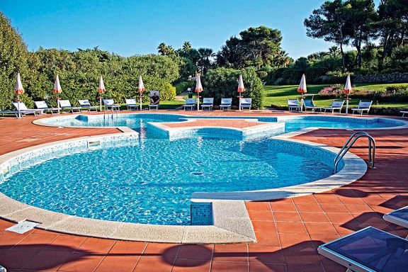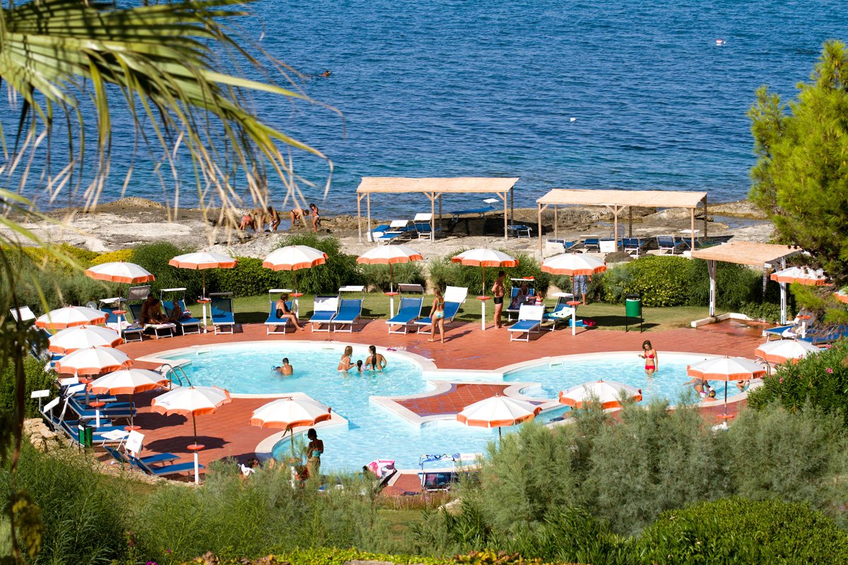 Ciekawie zaprojektowany, malowniczo wkomponowany w skaliste klify Morza Jońskiego i otoczony ogromnym ogrodem z bujną, tropikalną i śródziemnomorską roślinnością. Wszechobecne palmy, makia śródziemnomorska, fontanny, klomby z kwiatami, liczne mostki i dziedzińce tworzą idealne warunki do wypoczynku dla osób szukających spokoju i kontaktu z naturą. Pobyt w hotelu uatrakcyjniają włoskie i francuskie animacje, bogate zaplecze sportowe i smaczna kuchnia. Do dyspozycji Gości jest duży basen z widokiem na morze, brodzik dla dzieci oraz platforma z tarasem słonecznym z bezpłatnymi leżakami i parasolami.